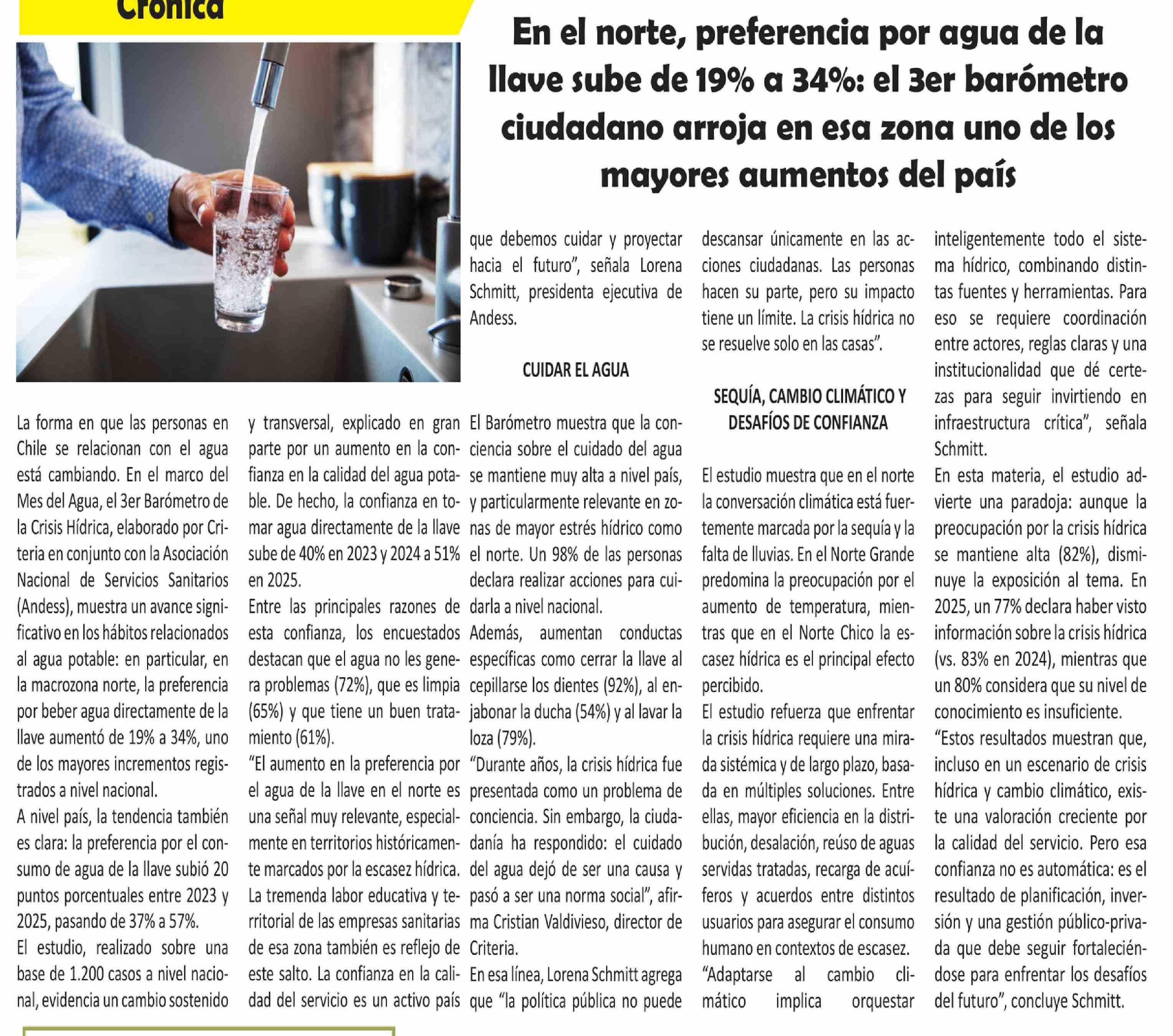 En el norte, preferencia por agua de la llave sube de 19% a 34%: el 3er barómetro ciudadano arroja en esa zona uno de los mayores aumentos del país