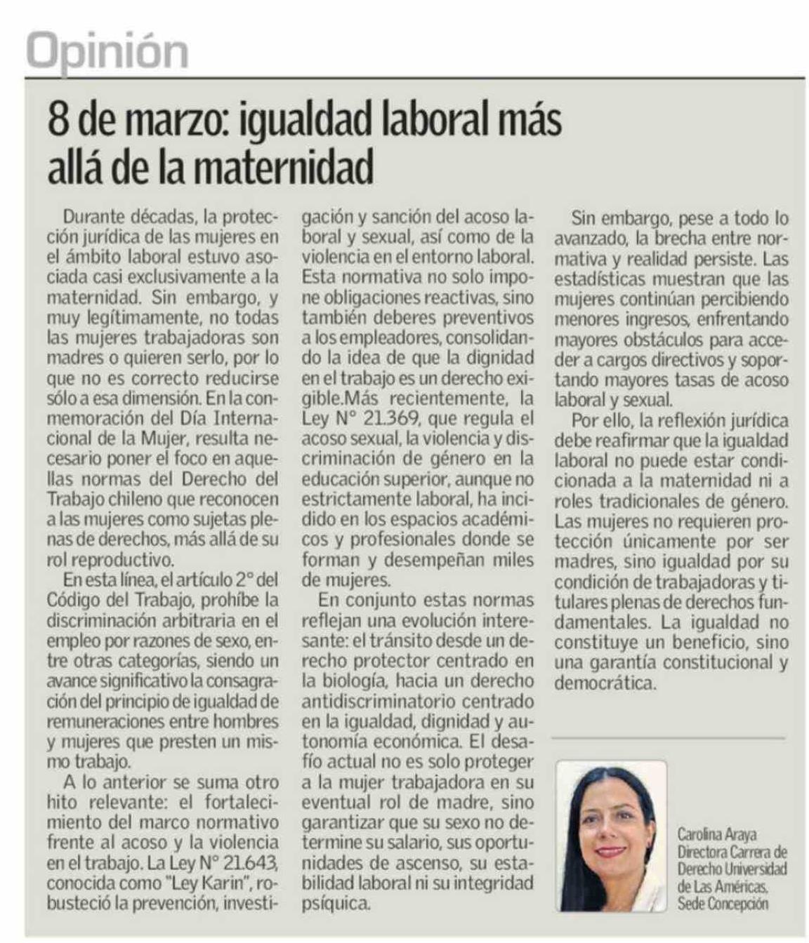 Columnas de Opinión: 8 De marzo: igualdad laboral más allá de la maternidad