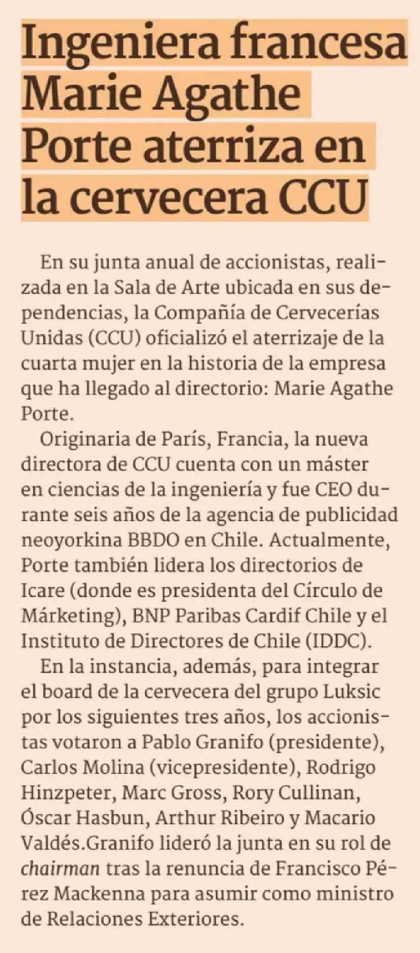 Ingeniera francesa Marie Agathe Porte aterriza en la cervecera CCU