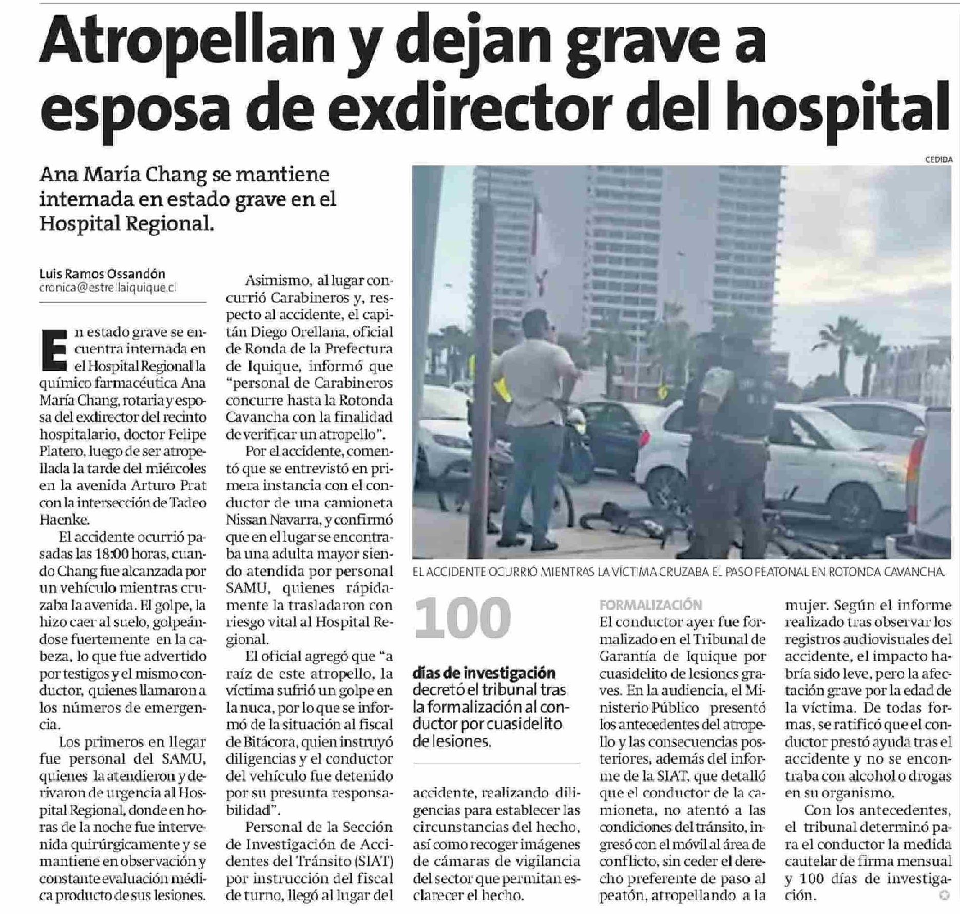 Atropellan y dejan grave a esposa de exdirector del hospital