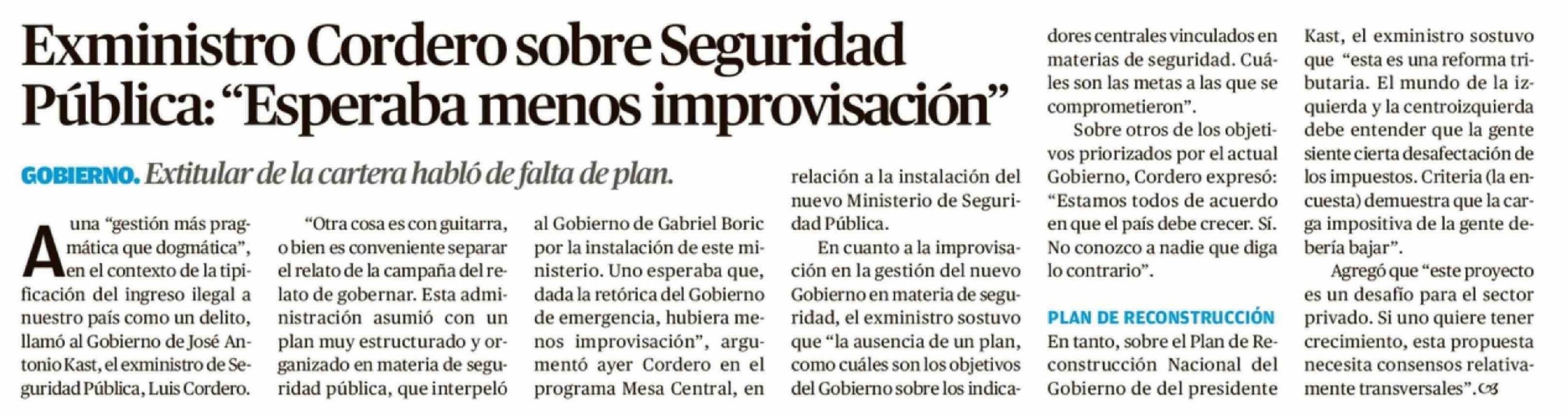 Exministro Cordero sobre Seguridad Pública: "Esperaba menos improvisación"