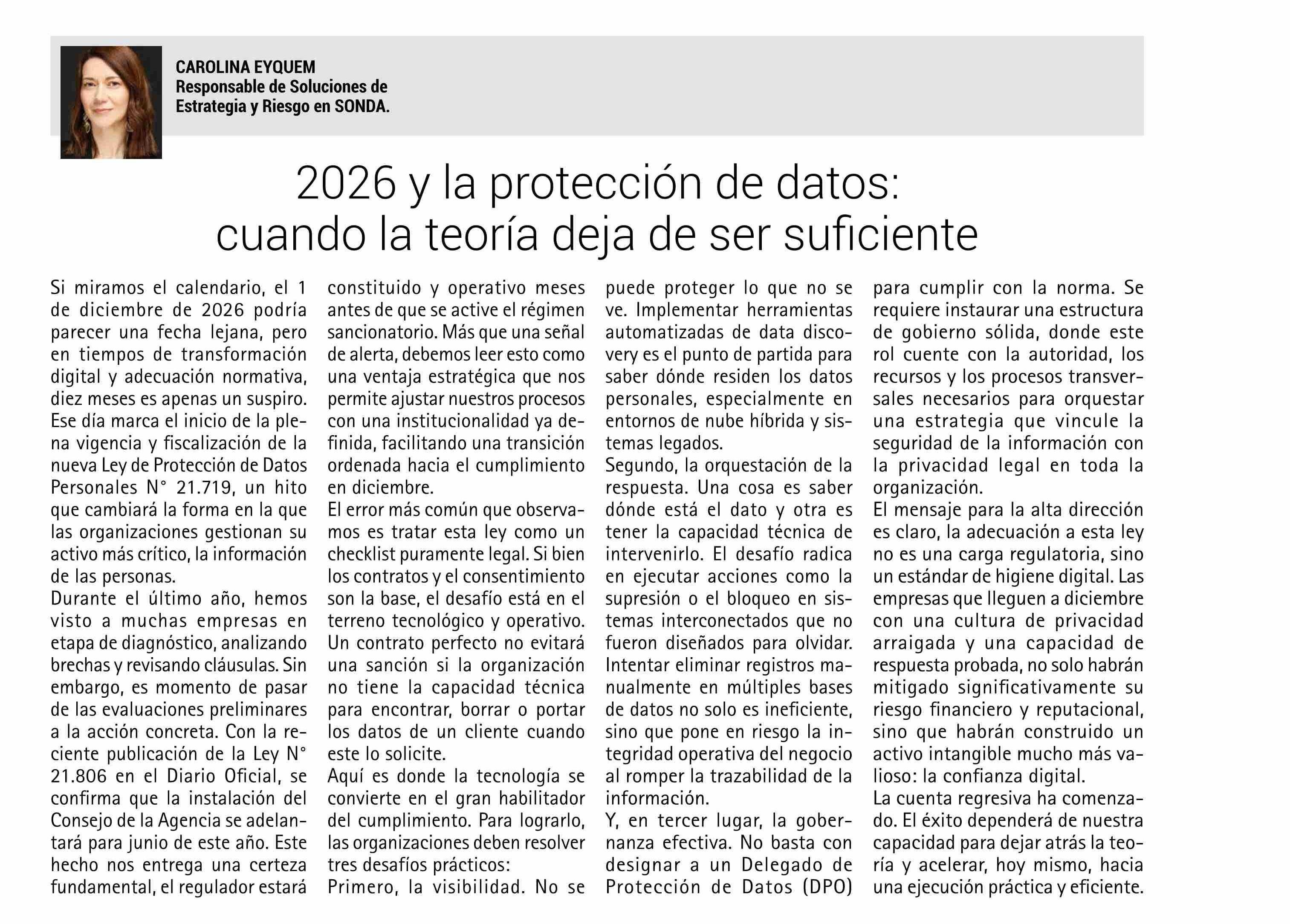 COLUMNAS DE OPINIÓN: 2026 y la protección de datos: cuando la teoría deja de ser suficiente