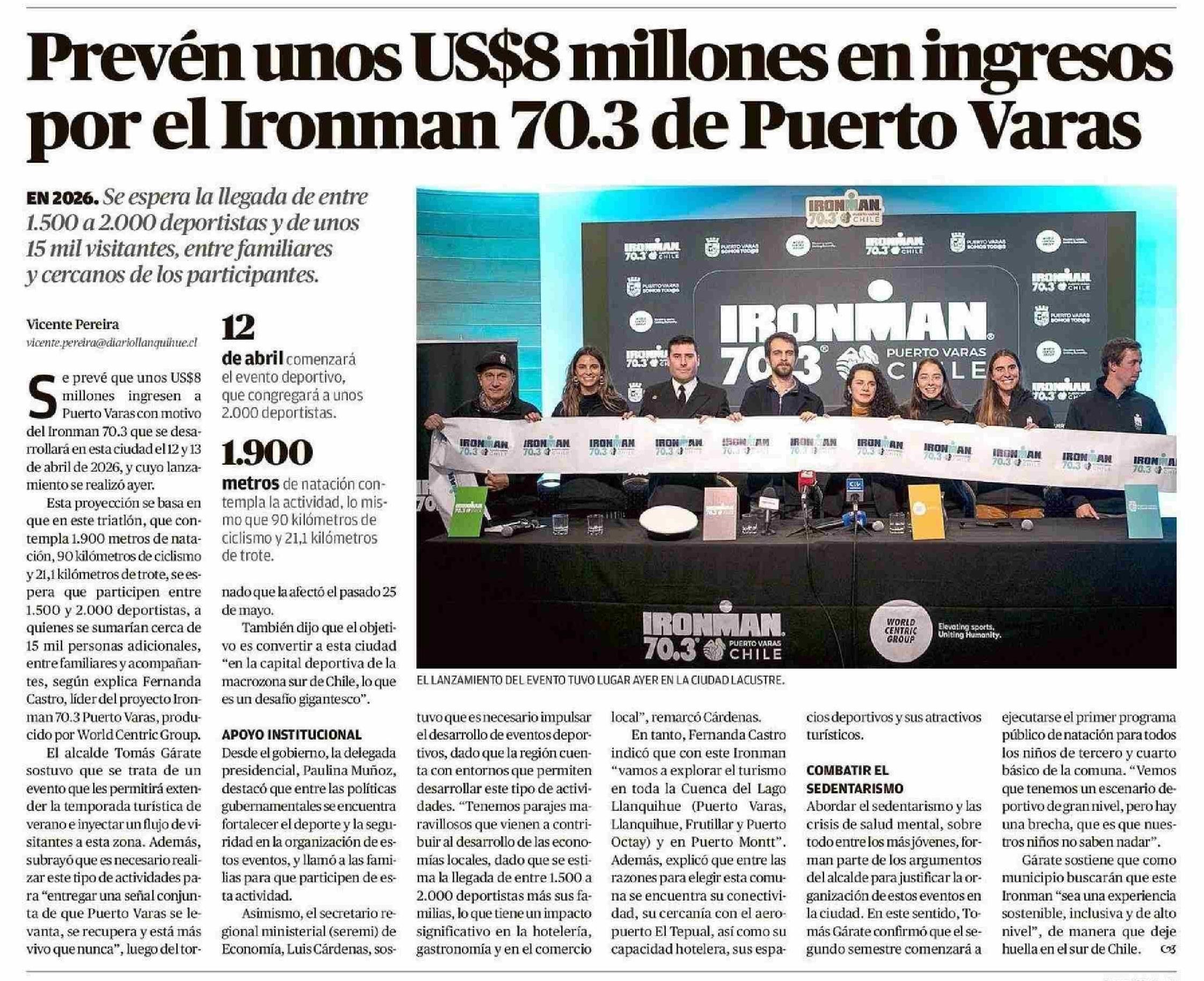 Prevén unos US$8 millones en ingresos por el Ironman 70.3 de Puerto Varas