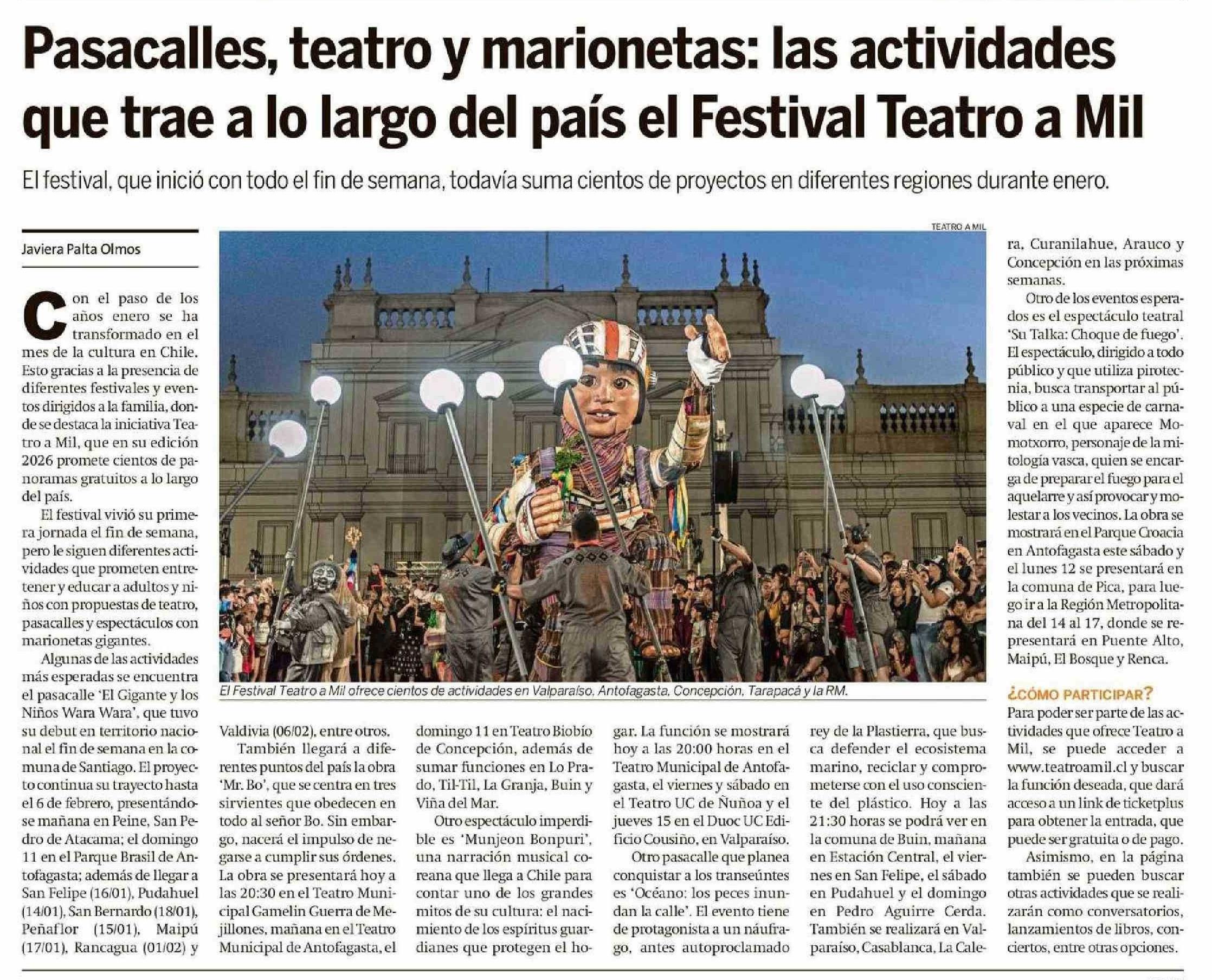 Pasacalles, teatro y marionetas: las actividades que trae a lo largo del país el Festival Teatro a Mil