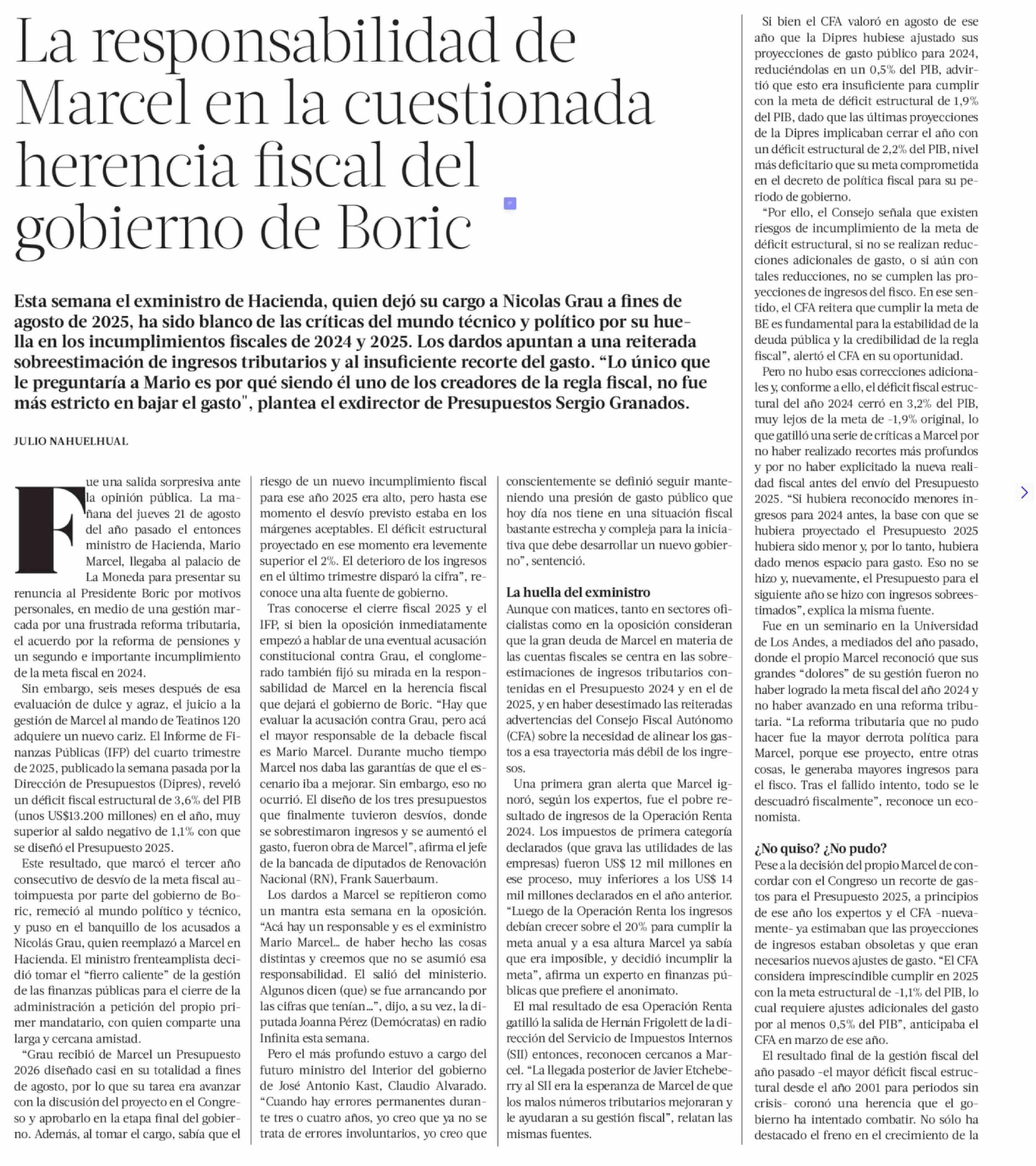 La responsabilidad de Marcel en la cuestionada herencia fiscal del gobierno de Boric