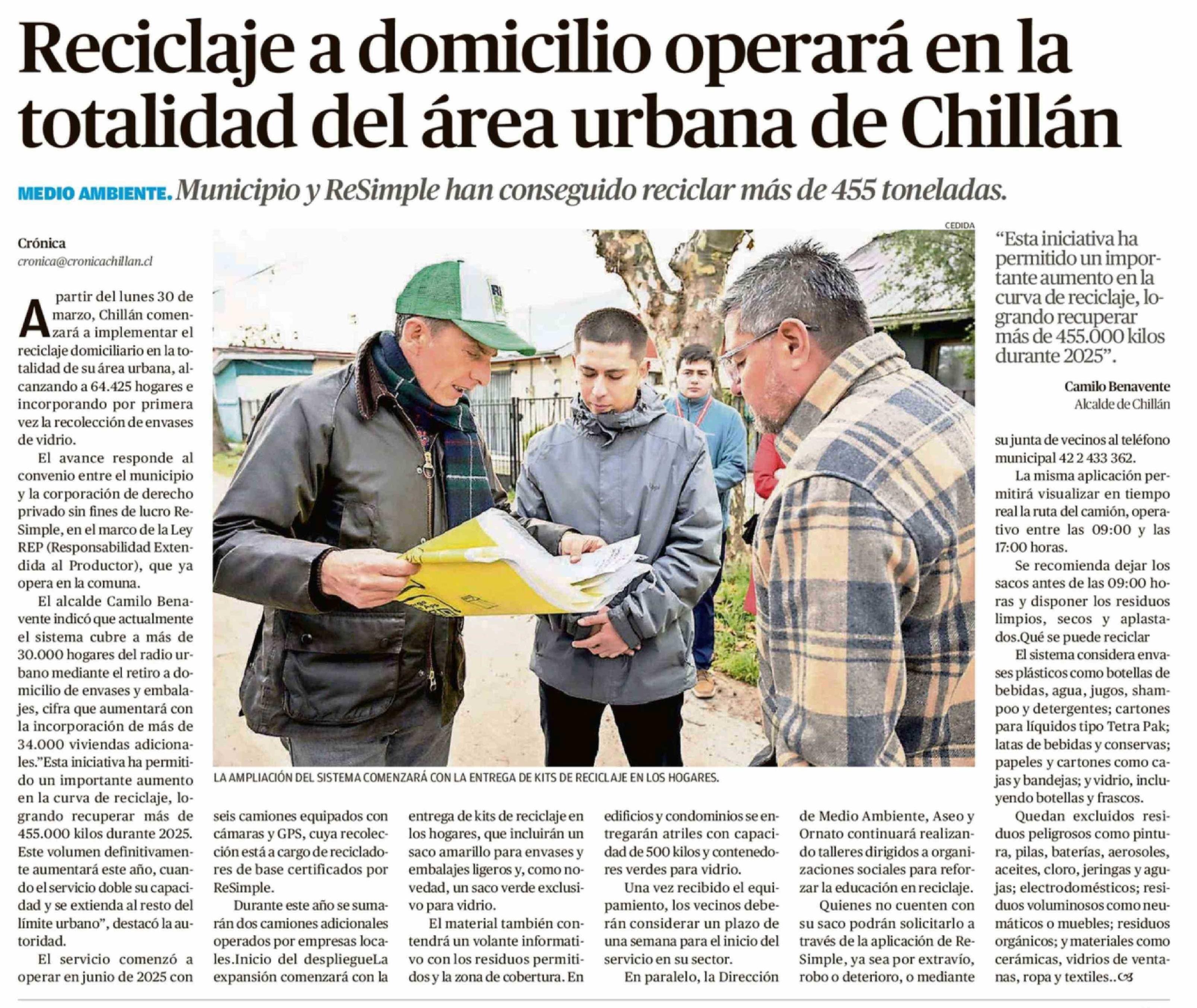 Reciclaje a domicilio operará en la totalidad del área urbana de Chillán