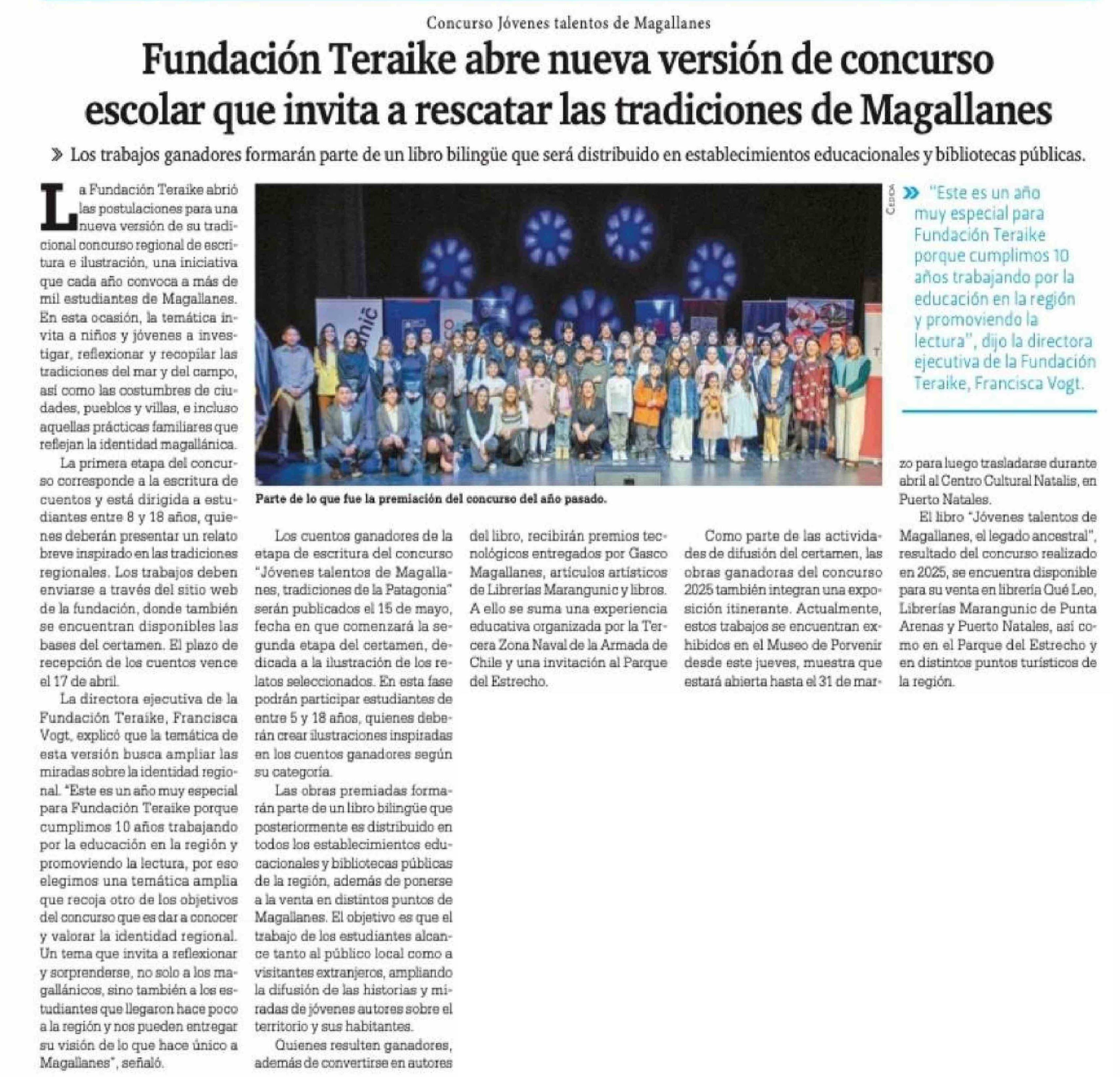 Fundación Teraike abre nueva versión de concurso escolar que invita a rescatar las tradiciones de Magallanes