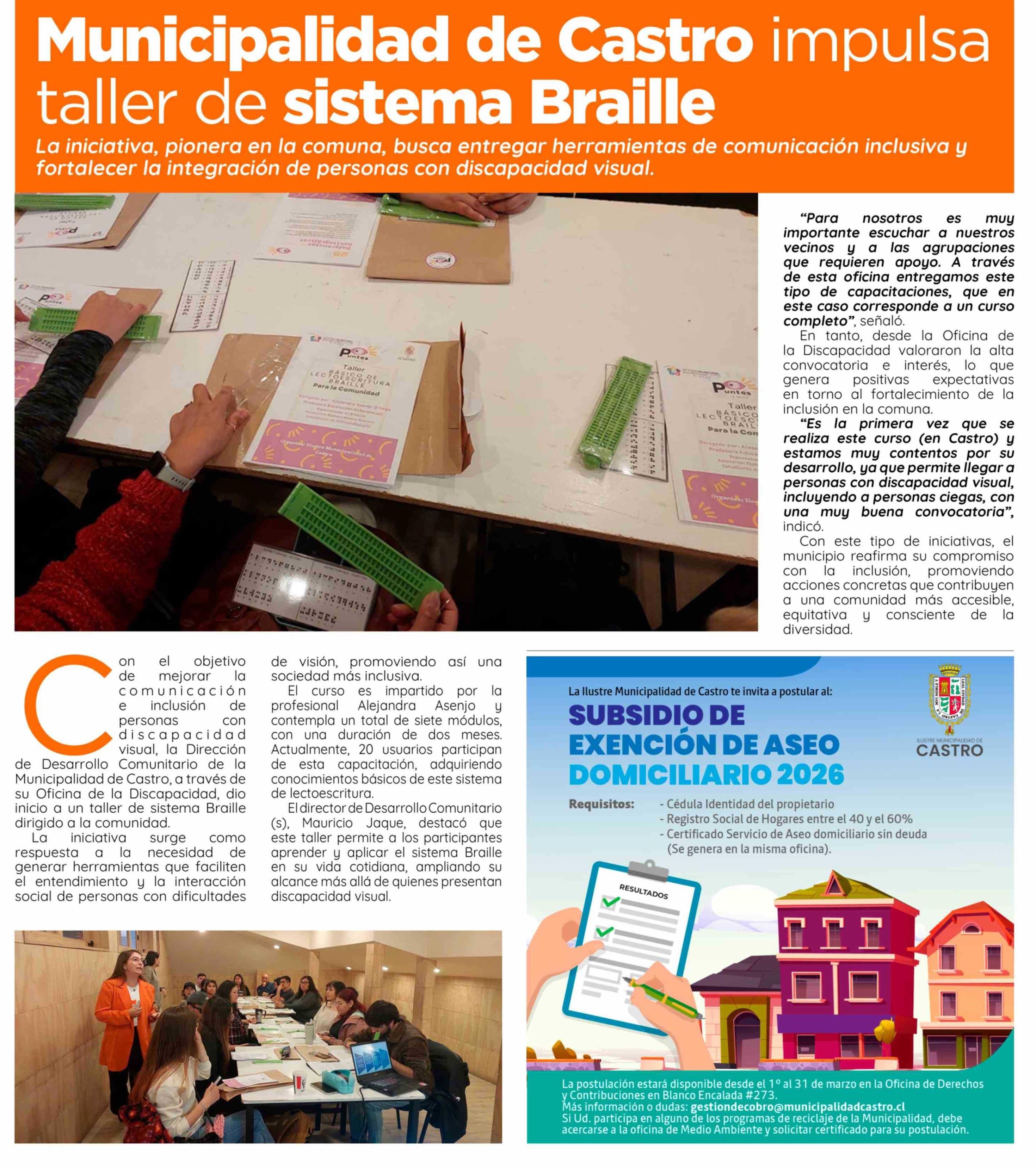 Municipalidad de Castro impulsa taller de sistema Braille