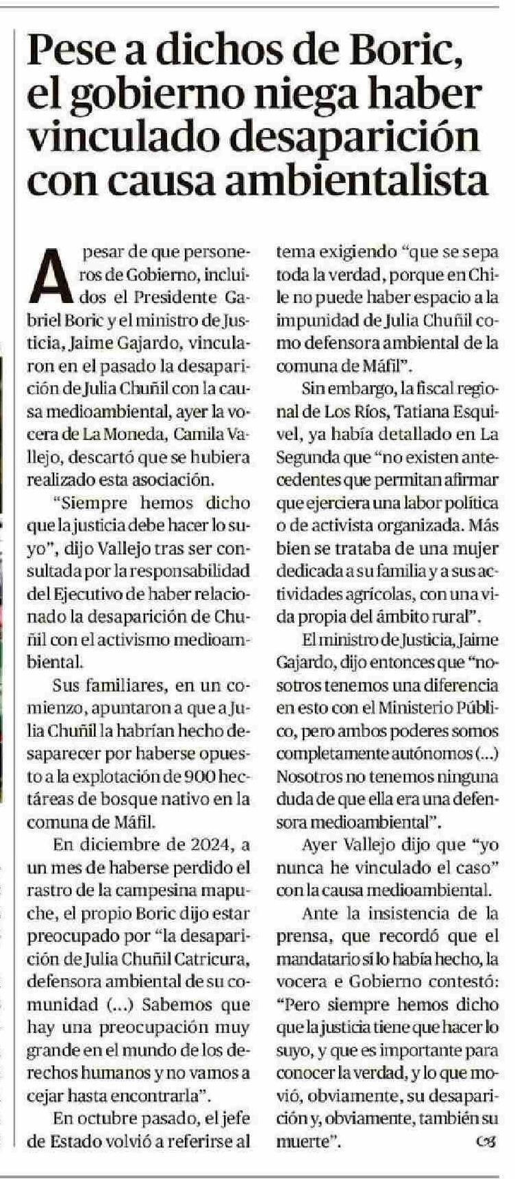 Pese a dichos de Boric, el gobierno niega haber vinculado desaparición con causa ambientalista
