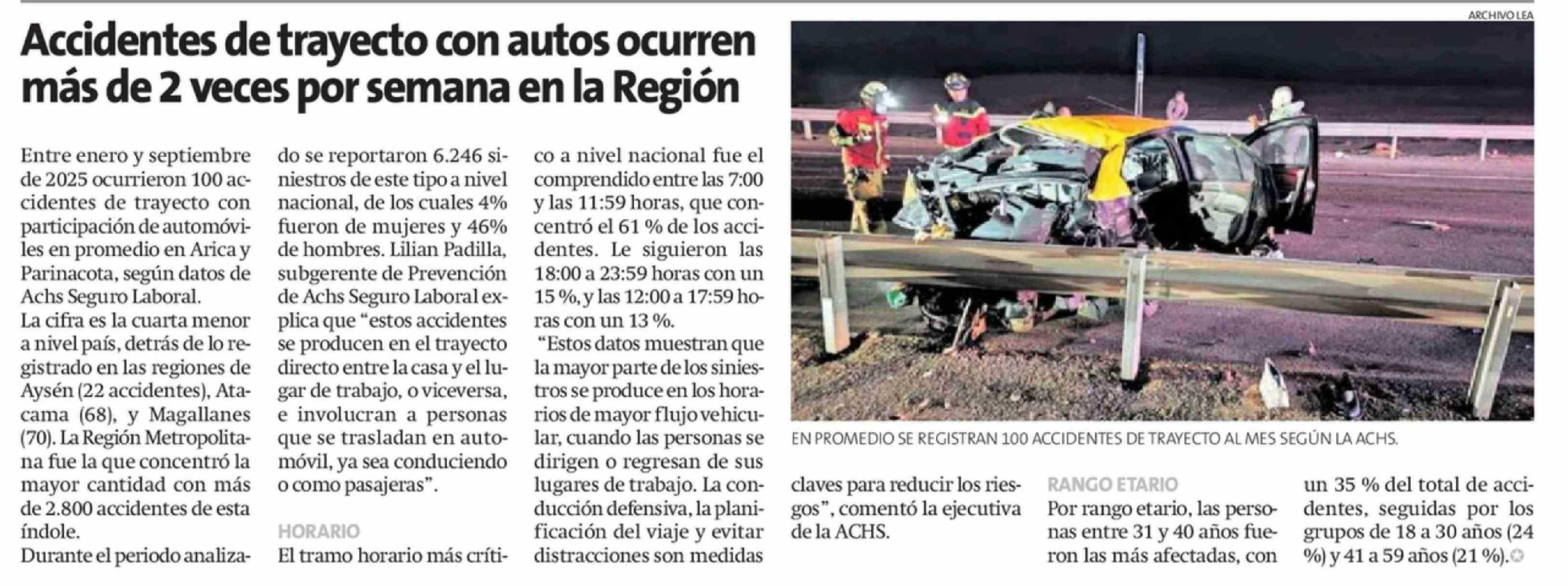 Accidentes de trayecto con autos ocurren más de 2 veces por semana en la Región