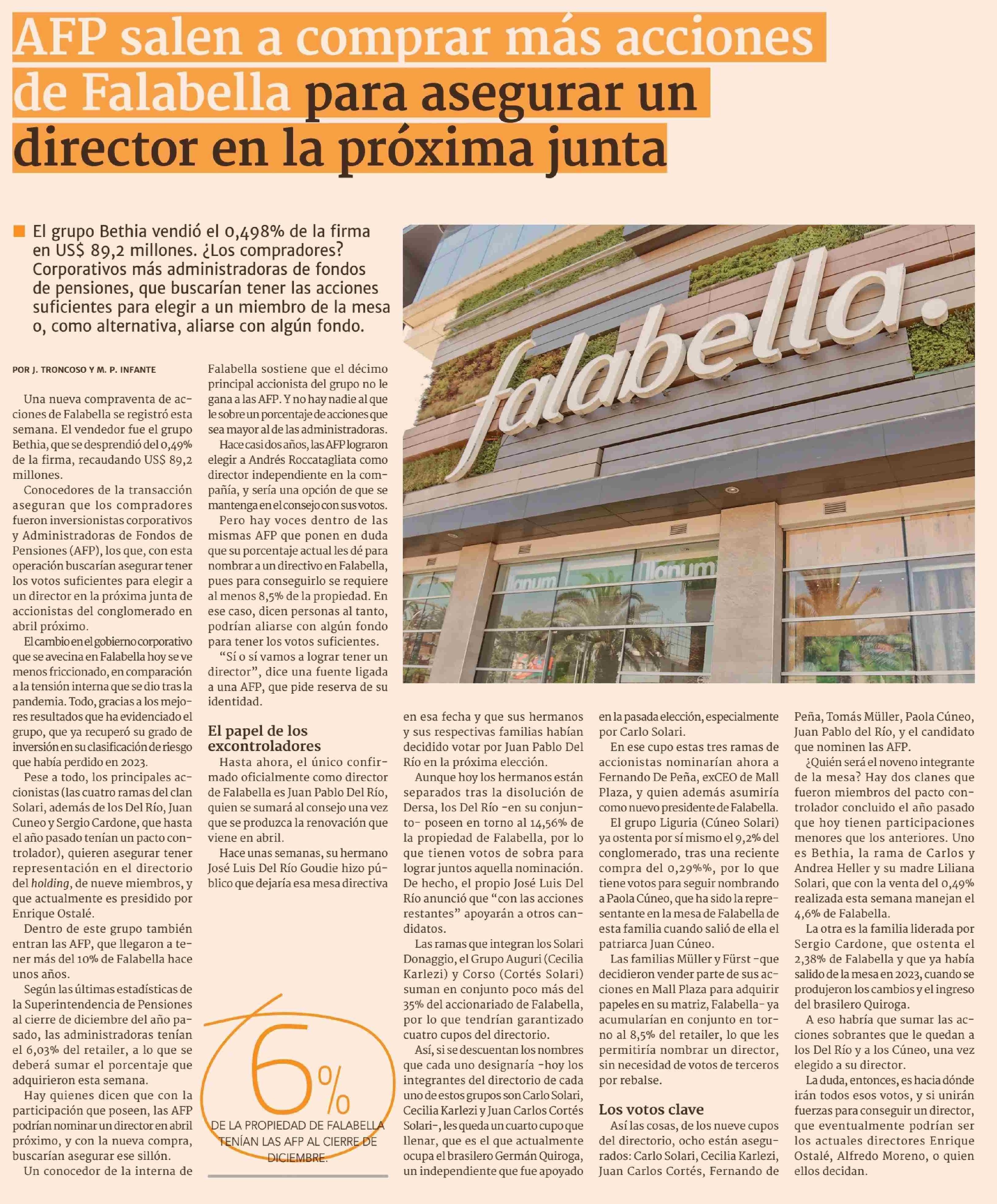 AFP salen a comprar más acciones de Falabella para asegurar un director en la próxima junta
