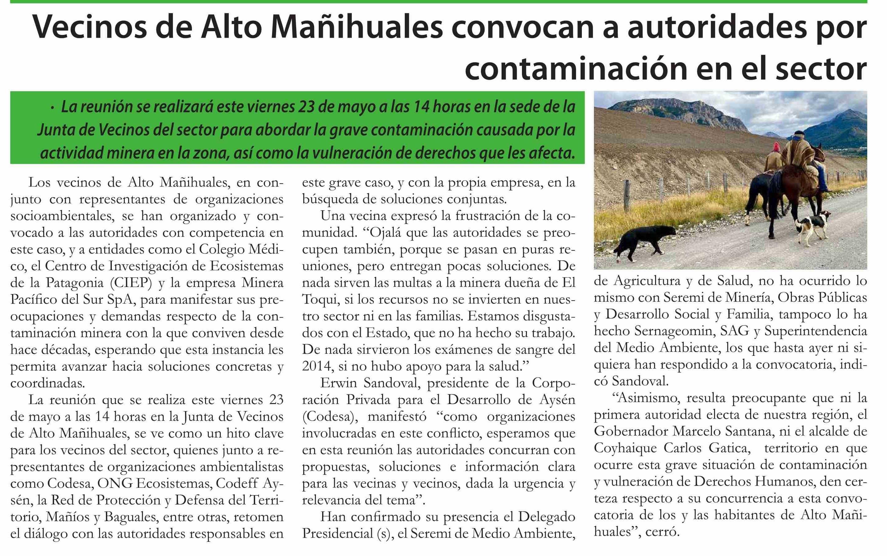 Vecinos de Alto Mañihuales convocan a autoridades por contaminación en el sector