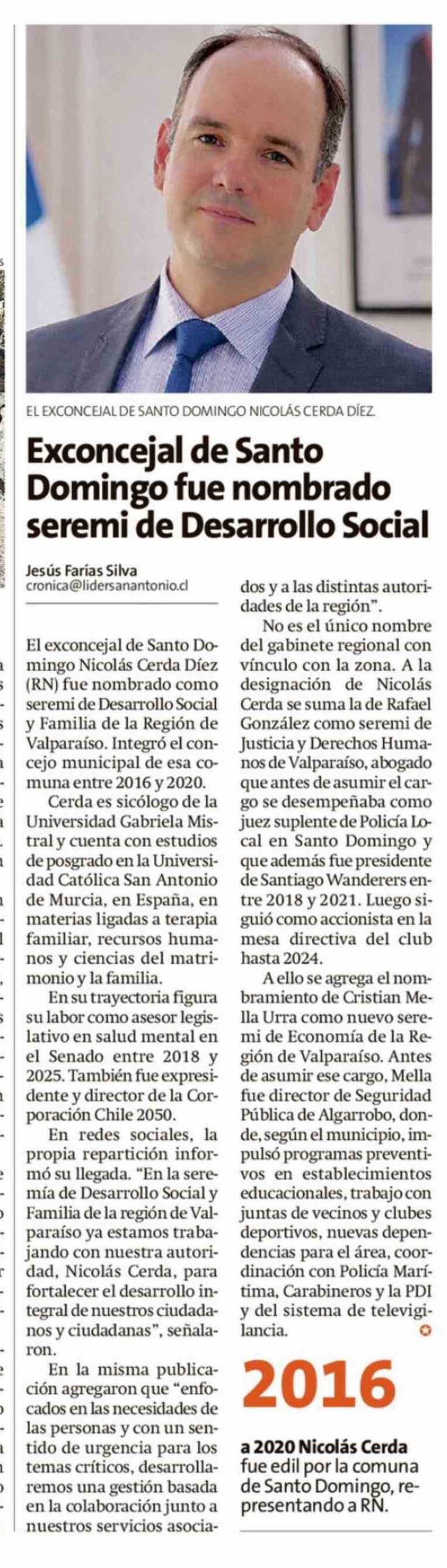 Exconcejal de Santo Domingo fue nombrado seremi de Desarrollo Social