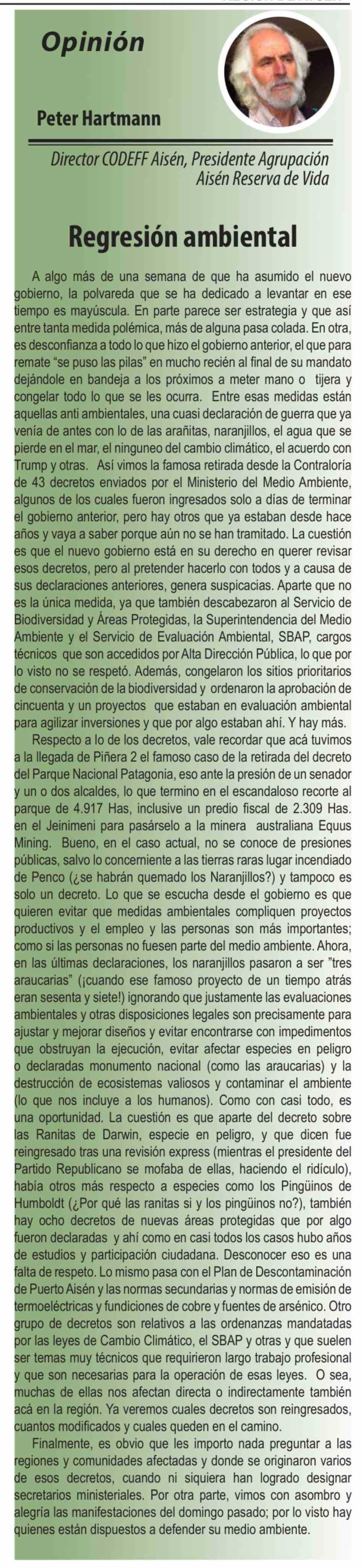 Columnas de Opinión: Regresión ambiental