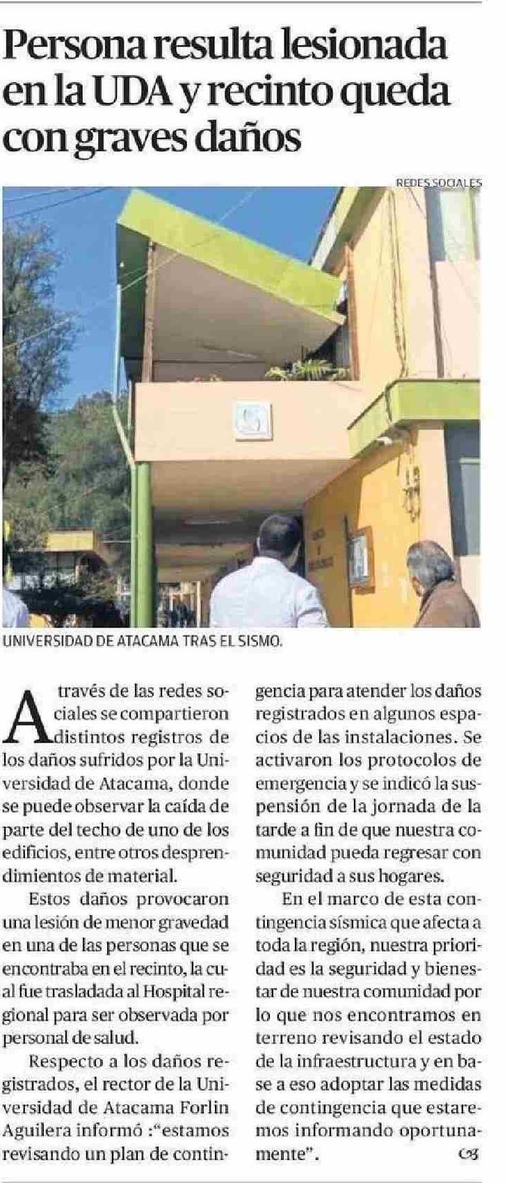 Persona resulta lesionada en la UDA y recinto queda con graves daños