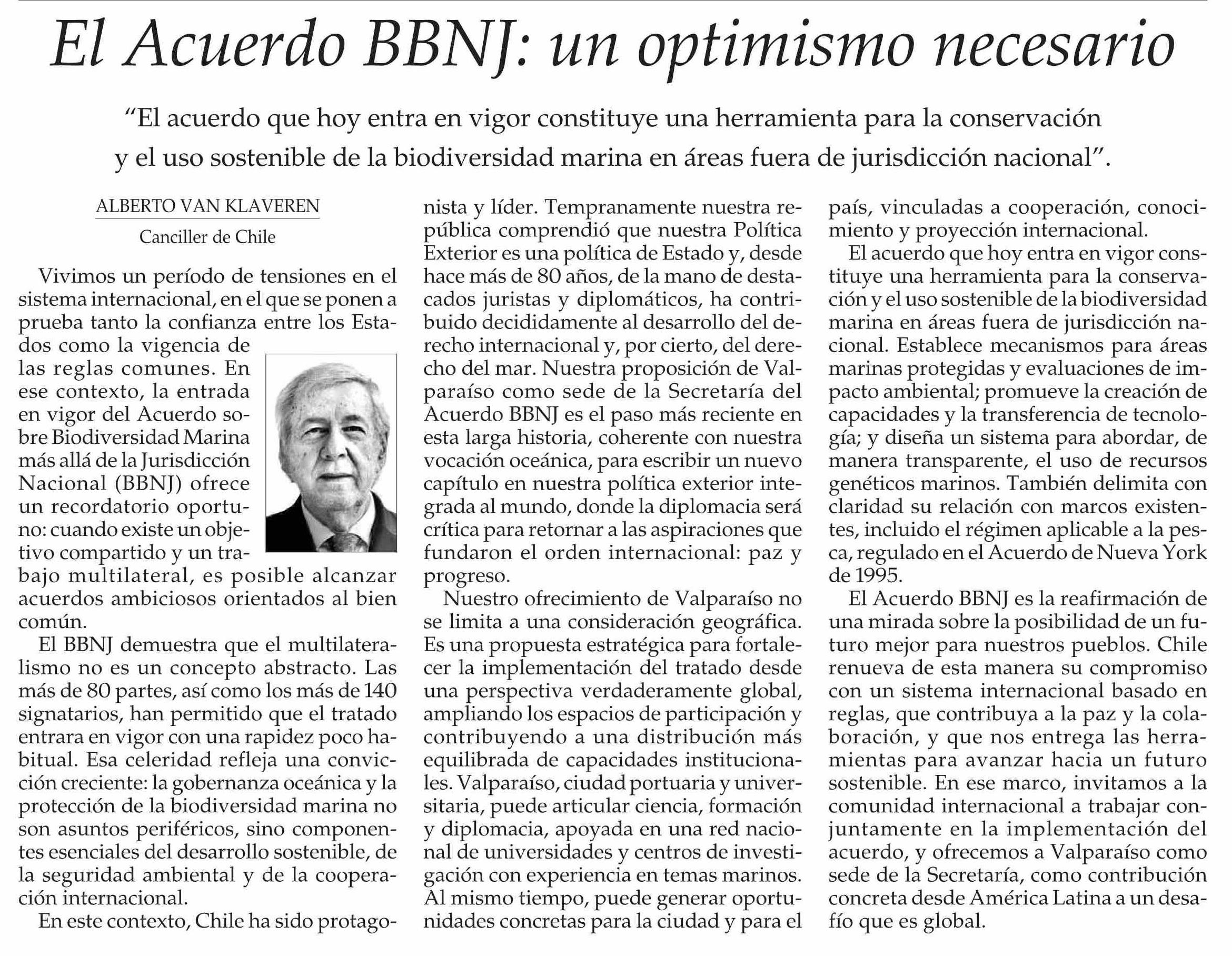 Columnas de Opinión: El Acuerdo BBNJ: un optimismo necesario