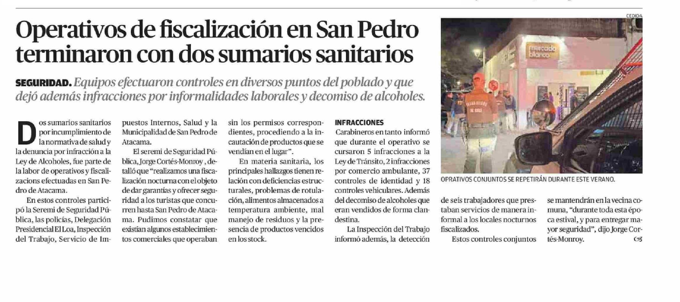 Operativos de fiscalización en San Pedro