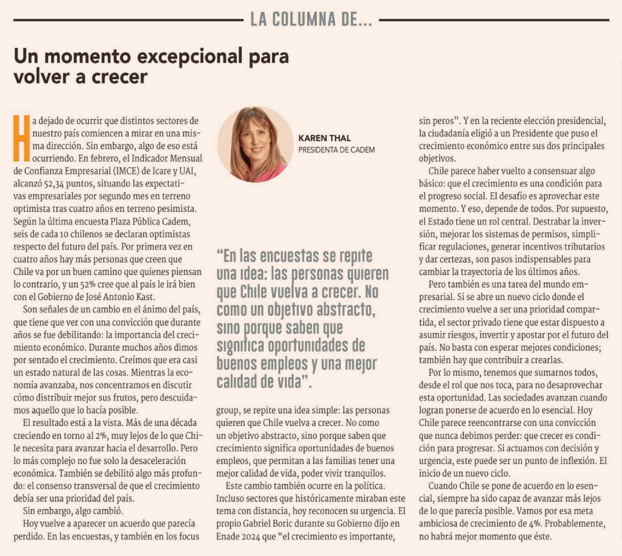 Columnas de Opinión: Un momento excepcional para volver a crecer