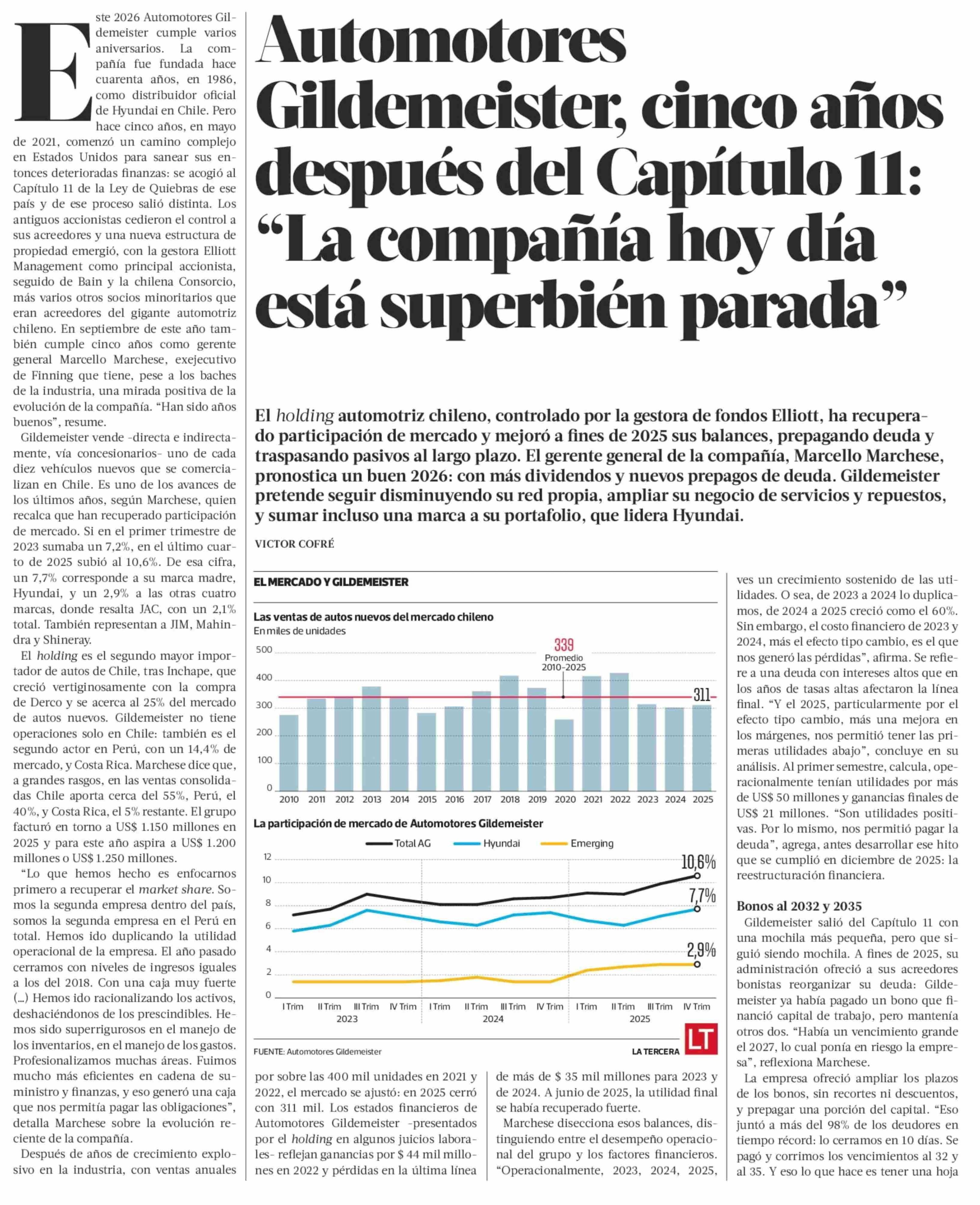 Automotores Gildemeister, cinco años después del Capítulo 11: "La compañía hoy día está superbién parada"