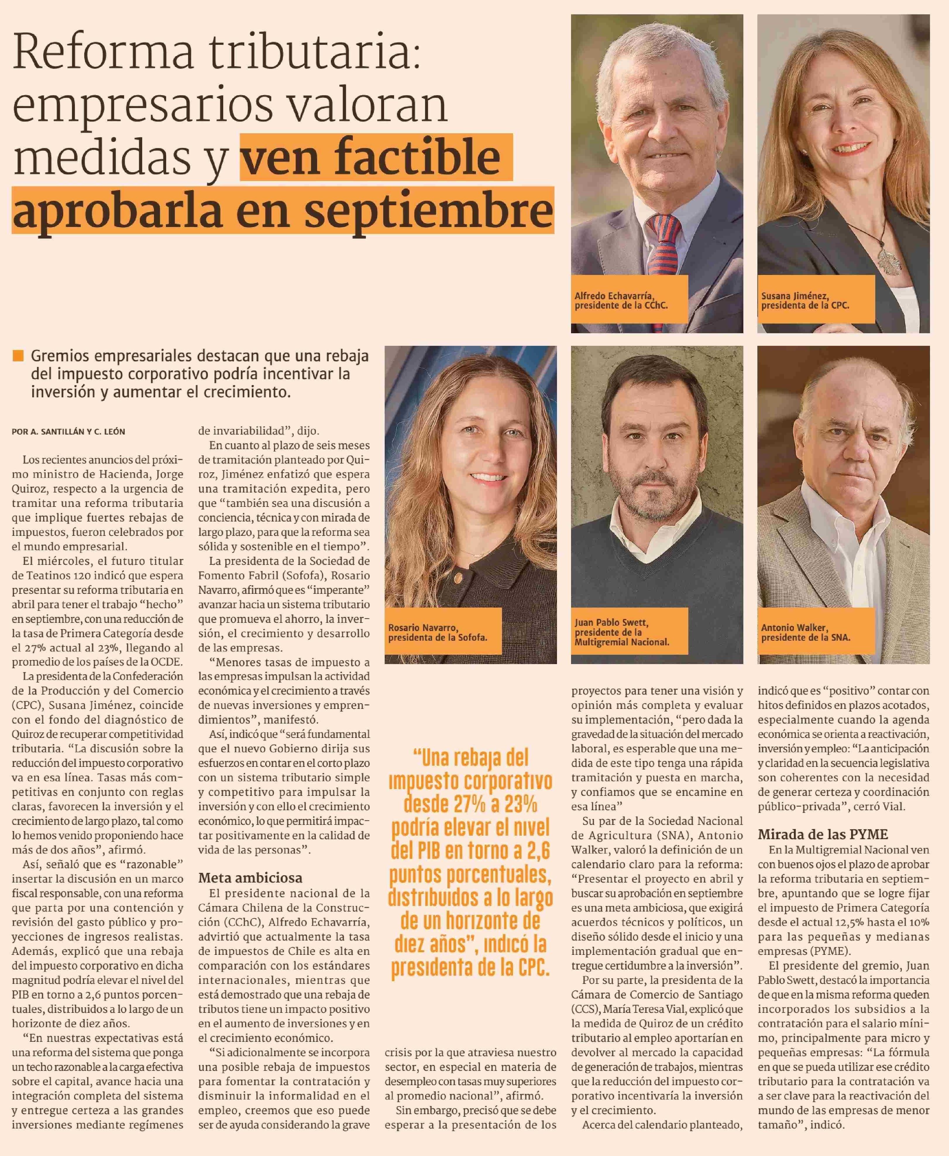 Reforma tributaria: empresarios valoran medidas y ven factible aprobarla en septiembre