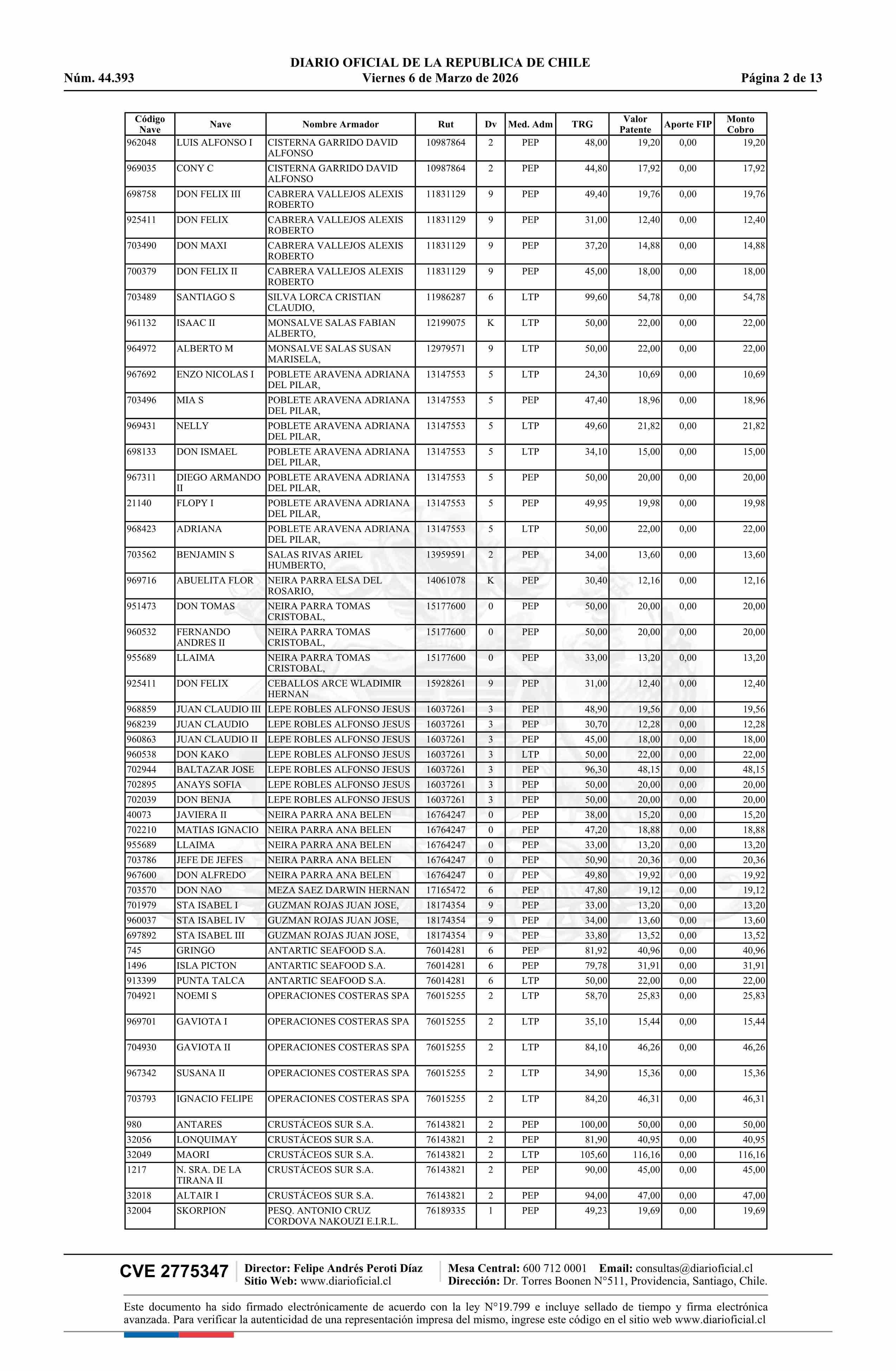 | Fuente: | Diario Oficial Edición Electrónica (Diario Oficial de Chile - 2 Normas Particulares) | Página(s): | 2-14 |