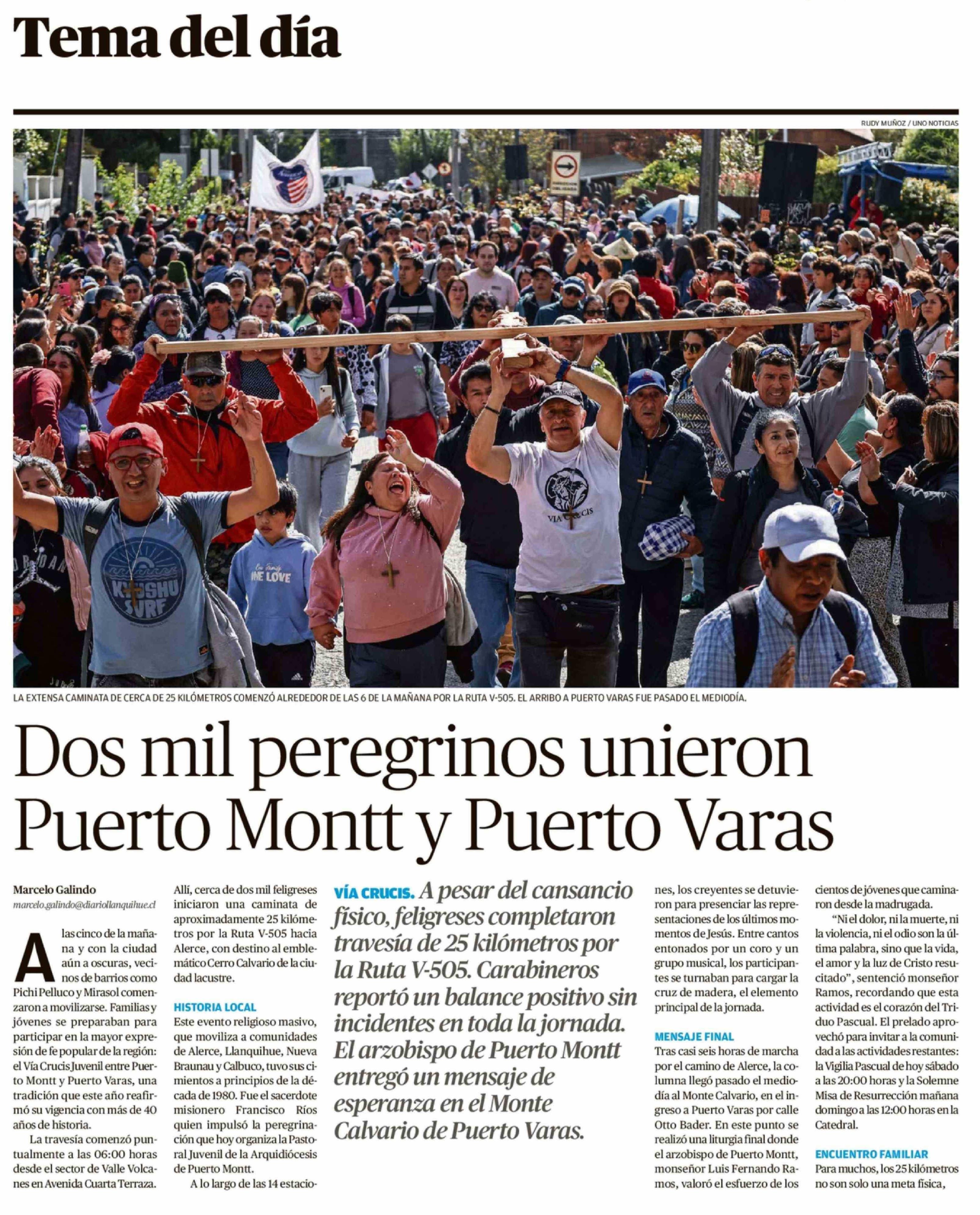 Dos mil peregrinos unieron Puerto Montt y Puerto Varas