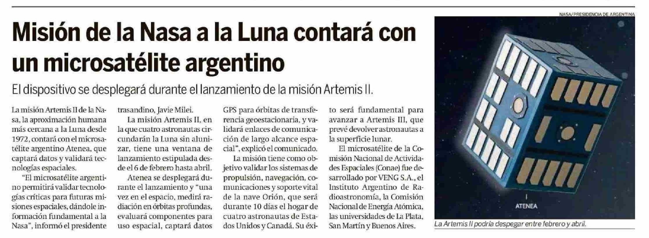 Misión de la Nasa a la Luna contará con un microsatélite argentino