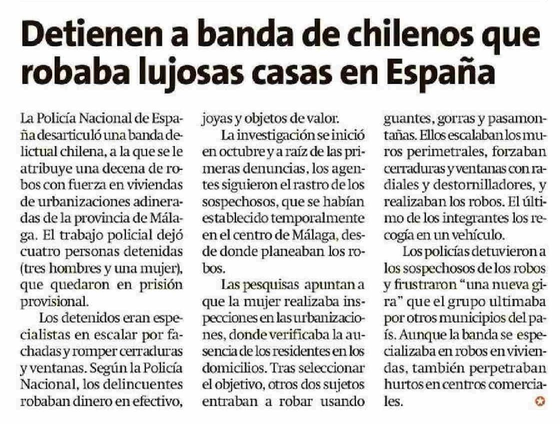 Detienen a banda de chilenos que robaba lujosas casas en España