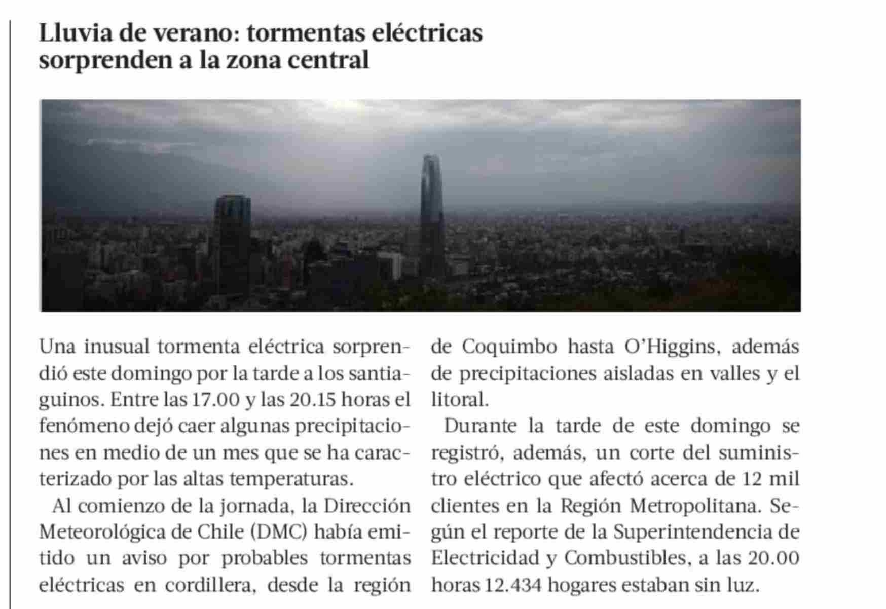 Lluvia de verano: tormentas eléctricas sorprenden a la zona central