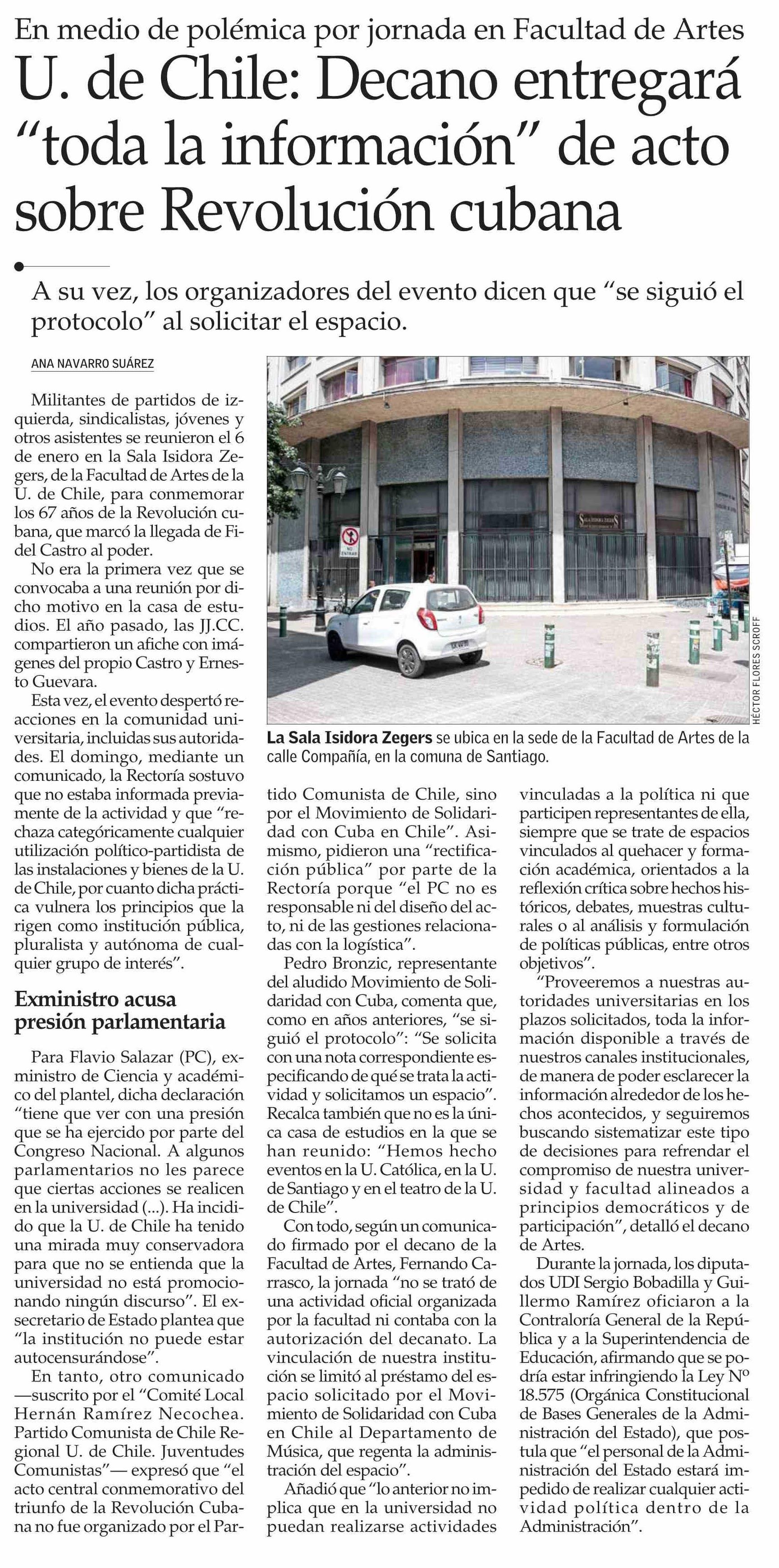 U. de Chile: Decano entregará “toda la información” de acto sobre Revolución cubana