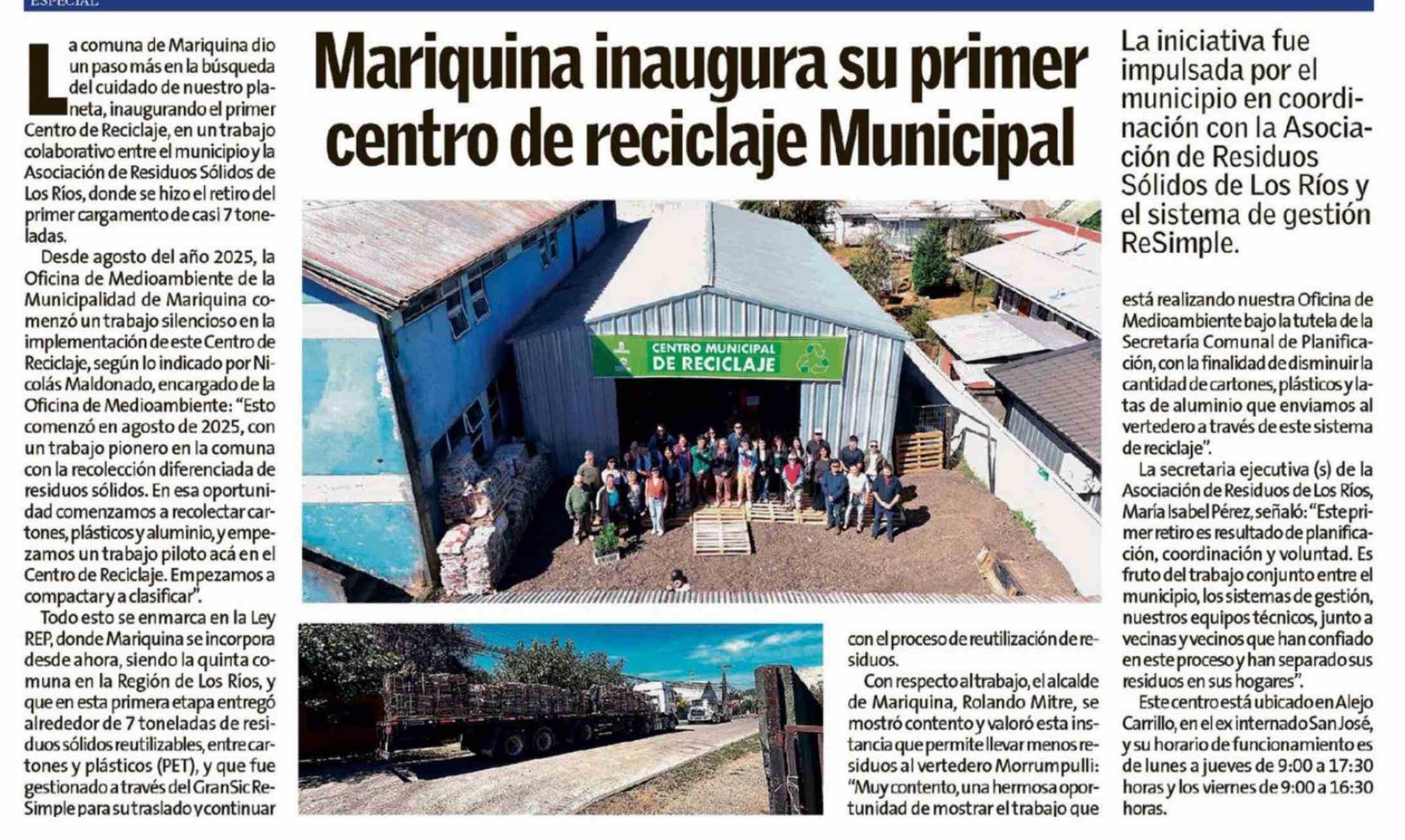 Mariquina inaugura su primer centro de reciclaje Municipal