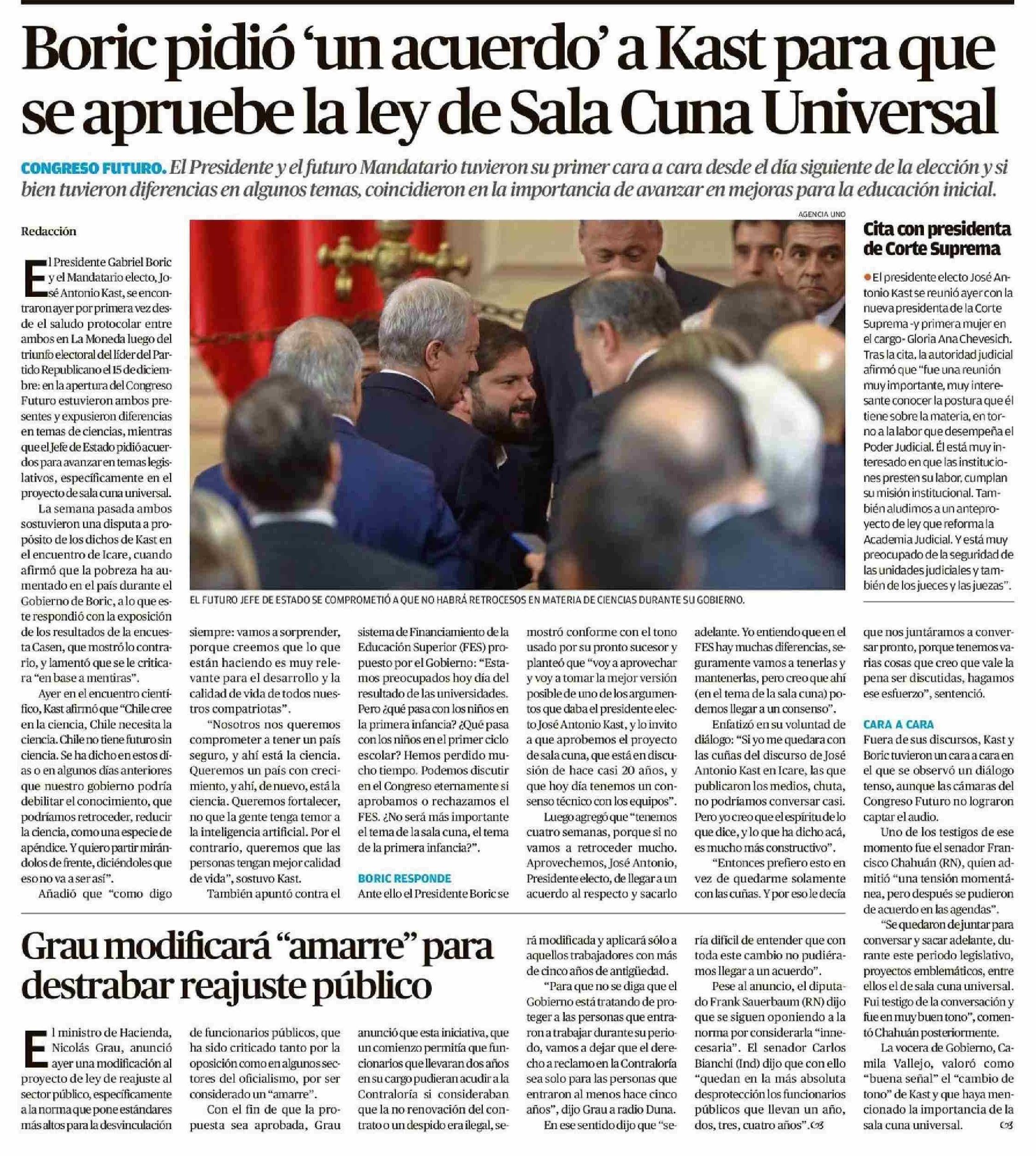Boric pidió 'un acuerdo' a Kast para que se apruebe la ley de Sala Cuna Universal