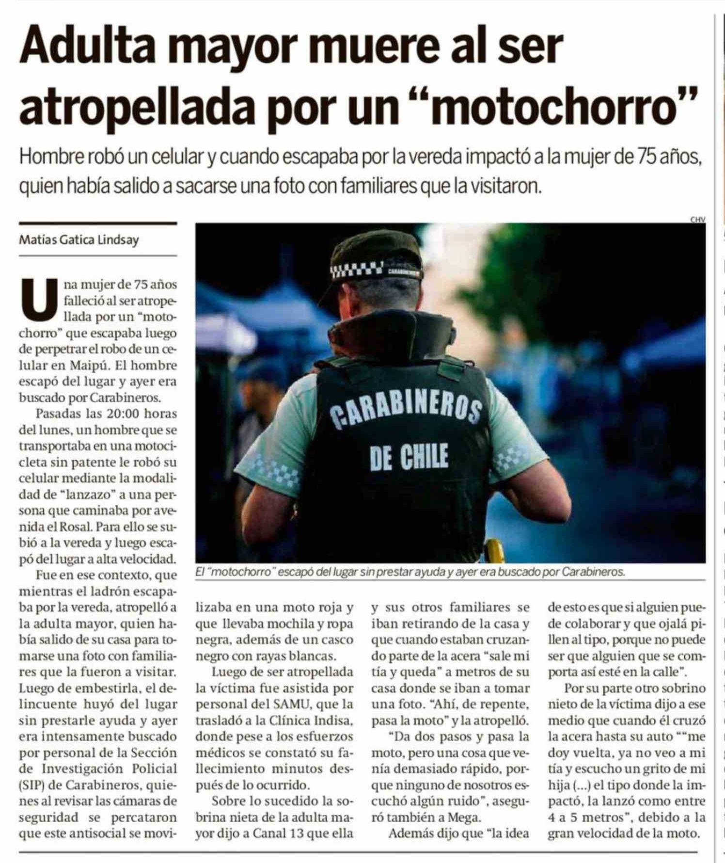 Adulta mayor muere al ser atropellada por un "motochorro"