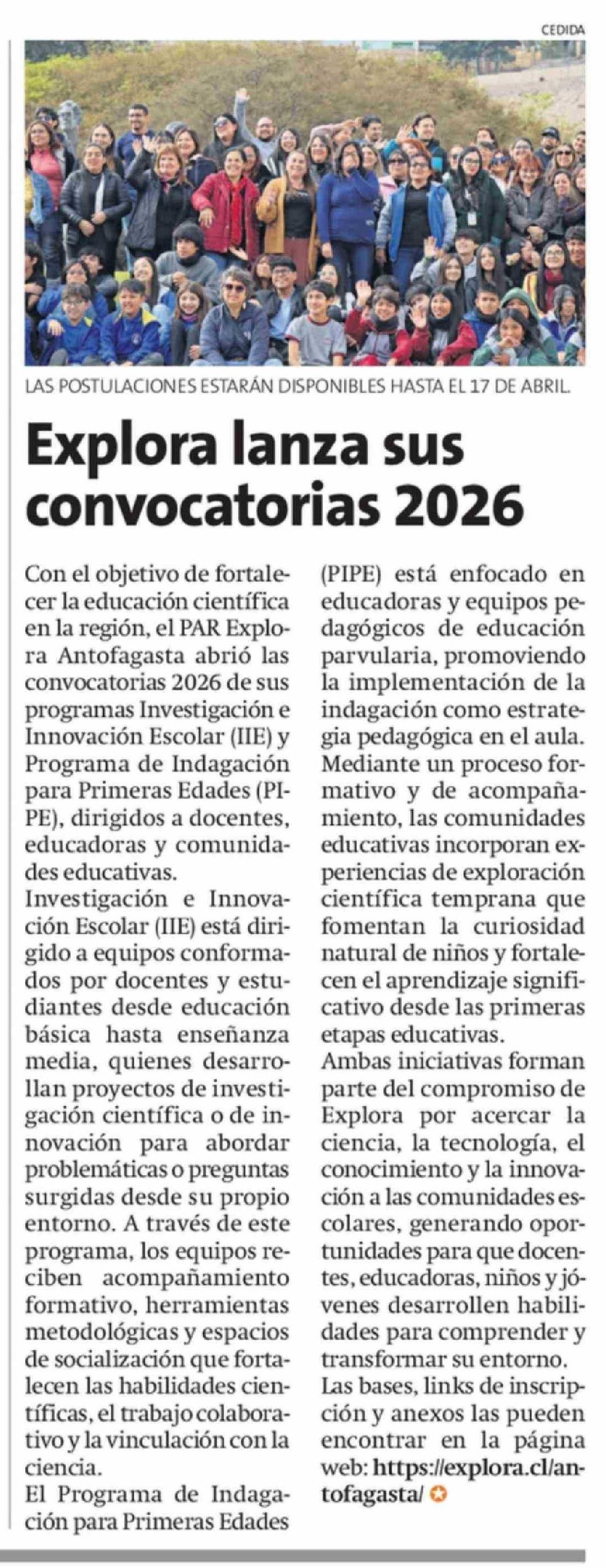 Explora lanza sus convocatorias 2026