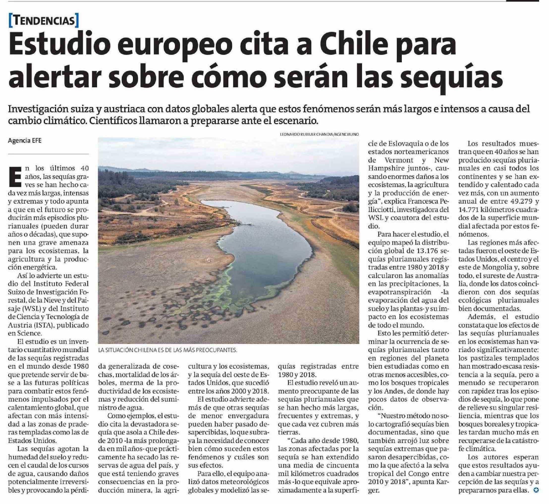 Estudio europeo cita a Chile para alertar sobre cómo serán las sequías