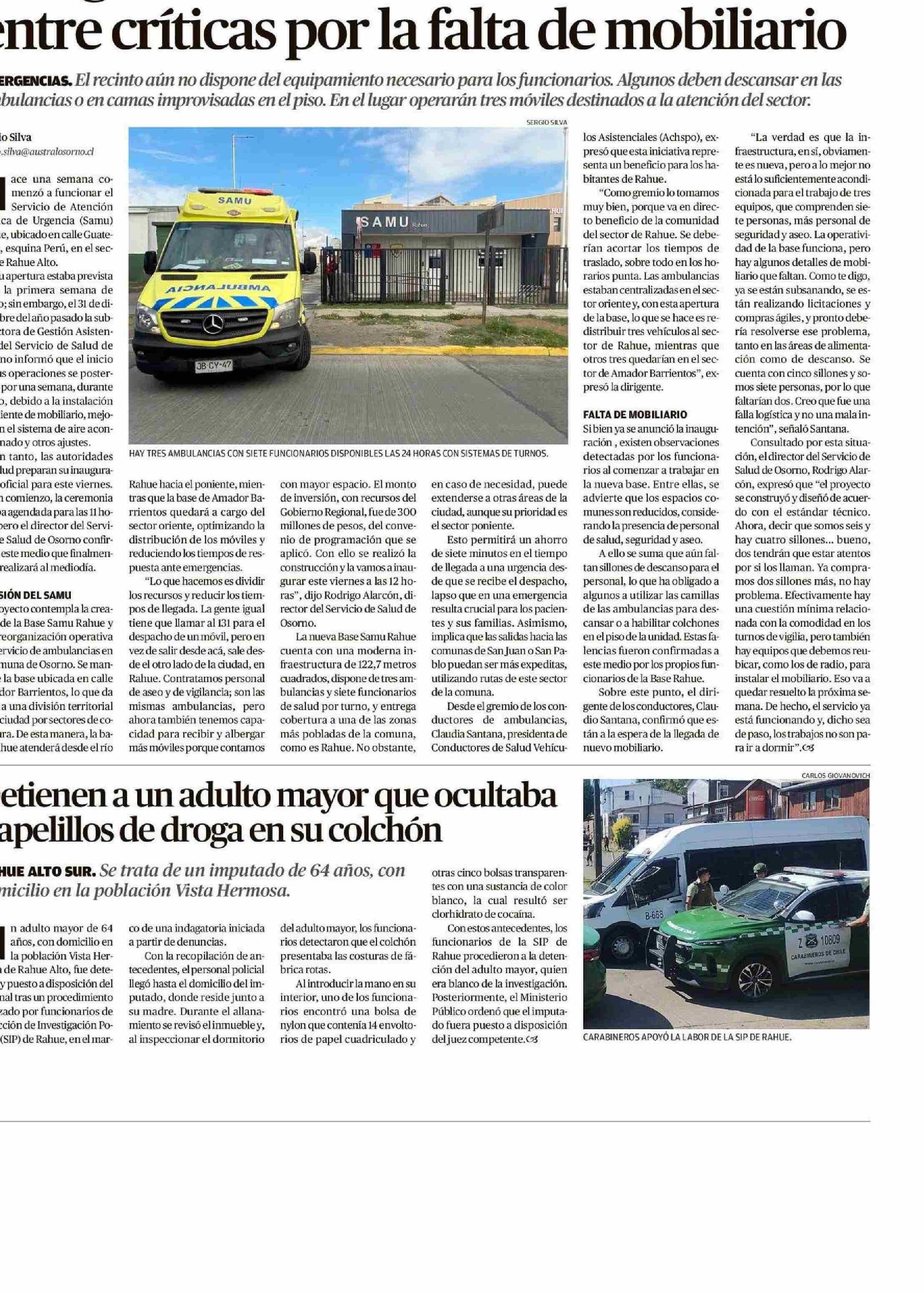 Inauguran nueva Base Samu de Rahue entre críticas por la falta de mobiliario