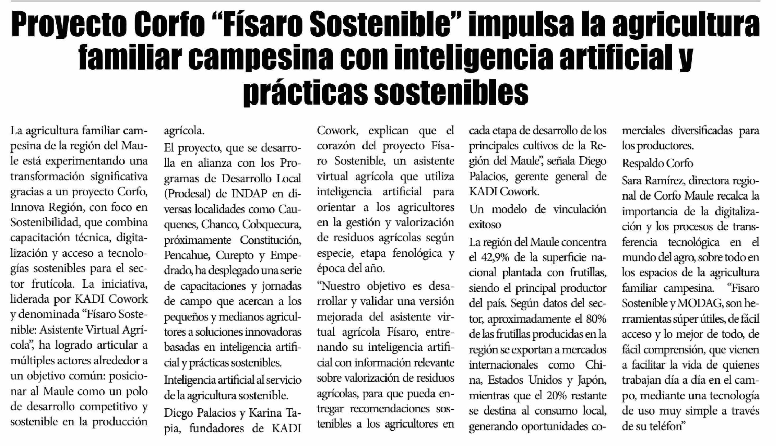 Proyecto Corfo "Fisaro Sostenible" impulsa la agricultura familiar campesina con inteligencia artificial y prácticas sostenibles