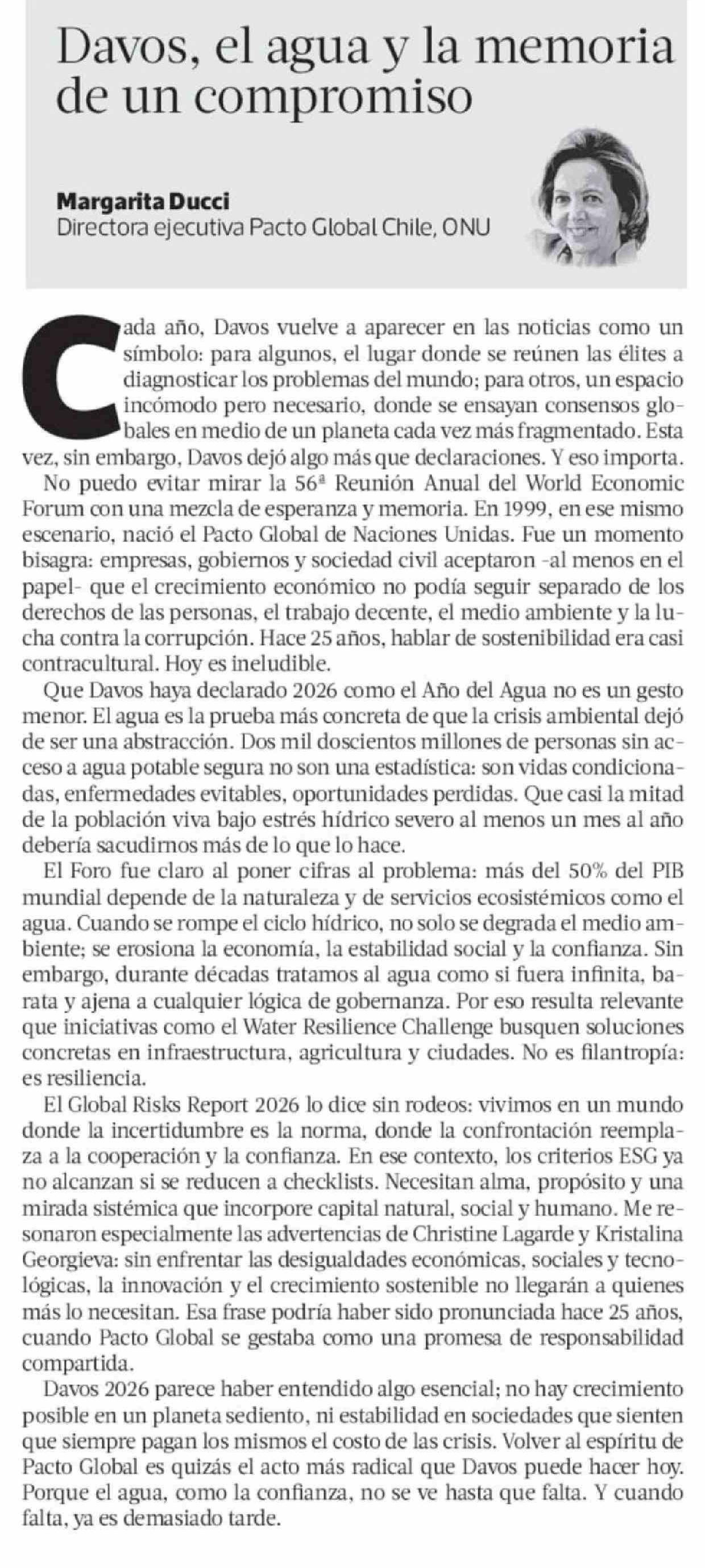 Columnas de Opinión: Davos, el agua y la memoria de un compromiso