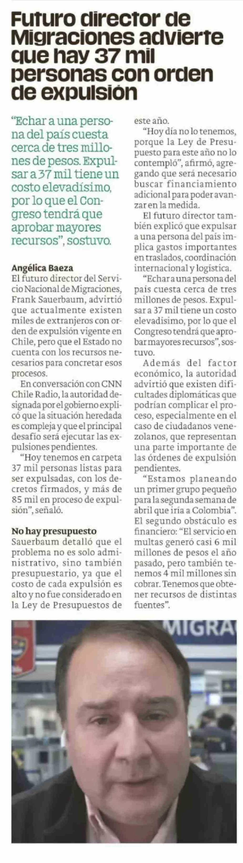 Futuro director de Migraciones advierte que hay 37 mil personas con orden de expulsión