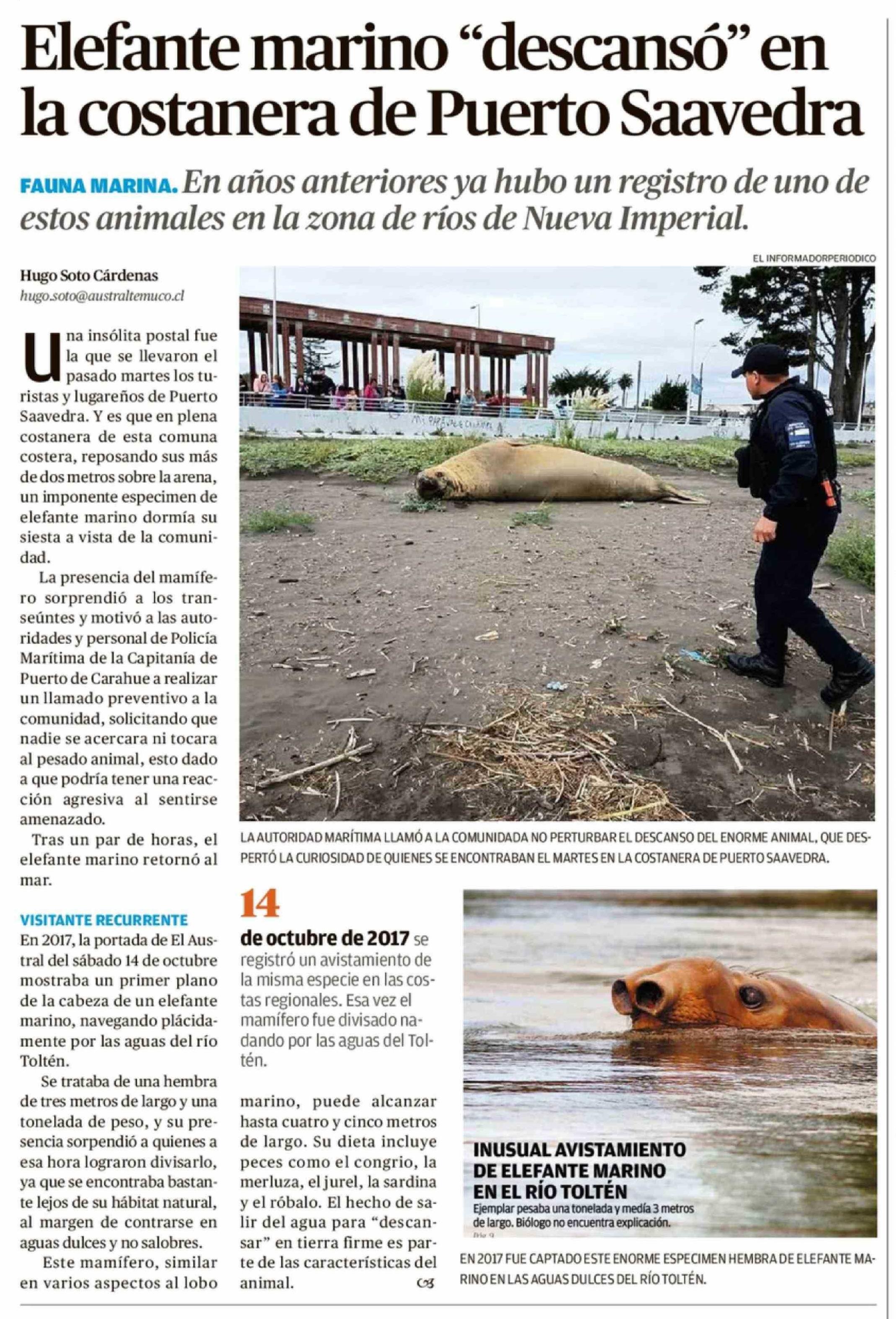 Elefante marino "descansó" en la costanera de Puerto Saavedra