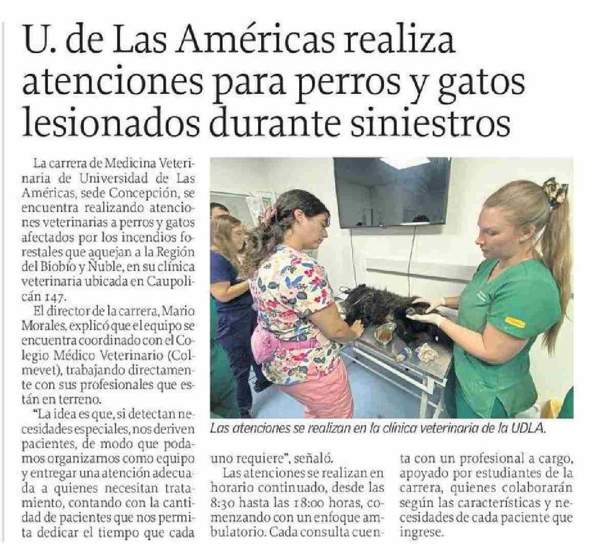 U. de Las Américas realiza atenciones para perros y gatos lesionados durante siniestros