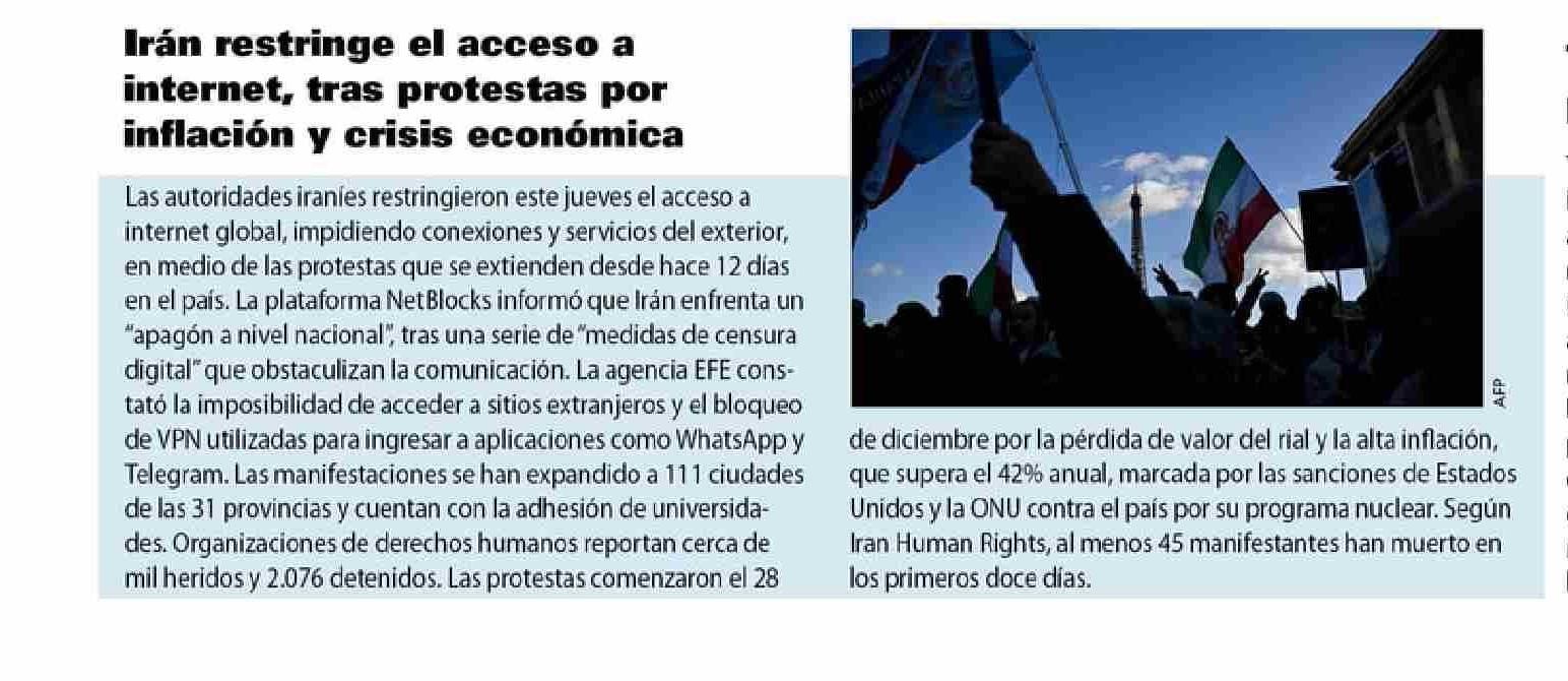 Irán restringe el acceso a internet, tras protestas por inflación y crisis económica