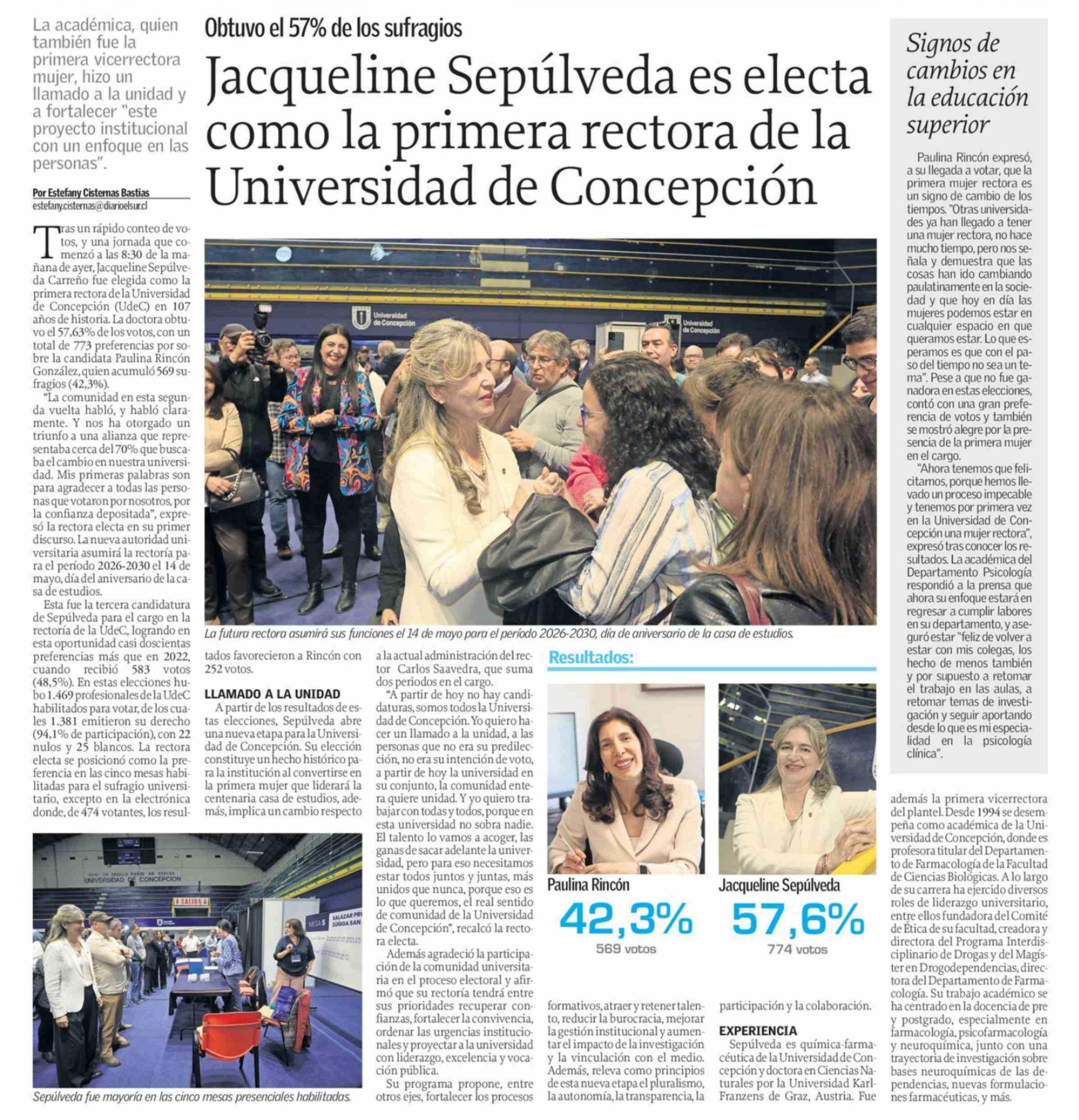 Título: Jacqueline Sepúlveda es electa como la primera rectora de la Universidad de Concepción