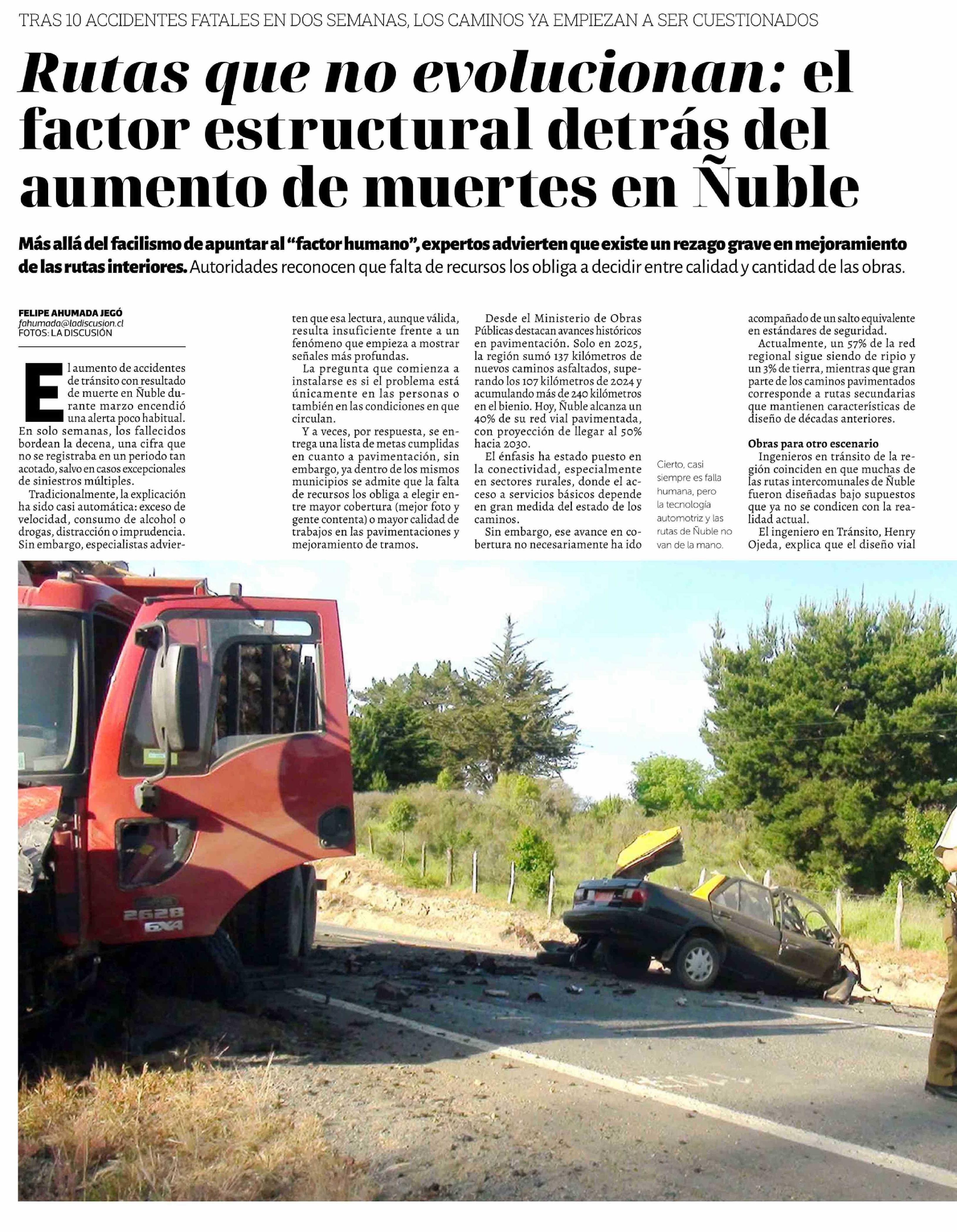 Rutas que no evolucionan: el factor estructural detrás del aumento de muertes en Nuble