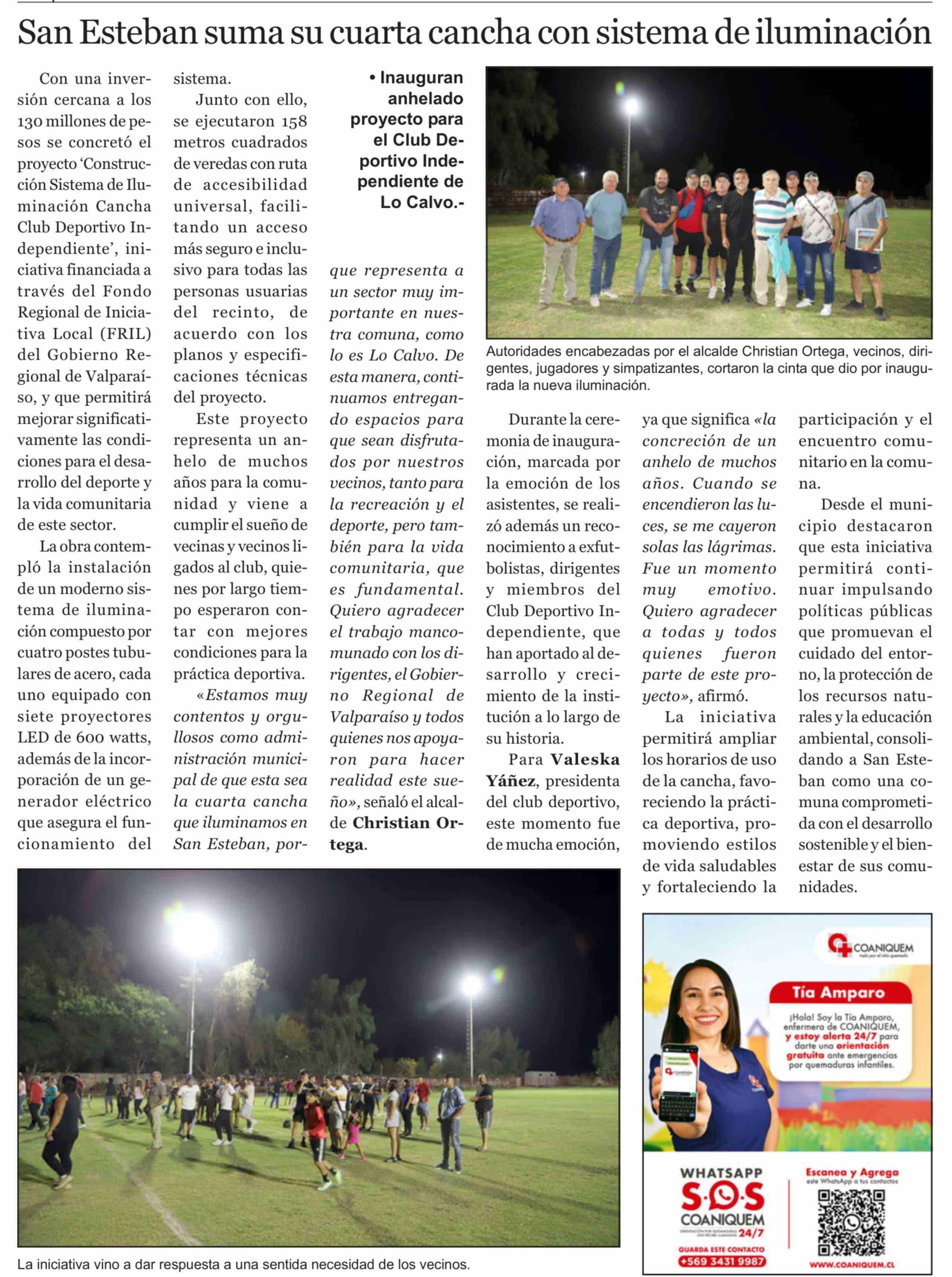 San Esteban suma su cuarta cancha con sistema de iluminación
