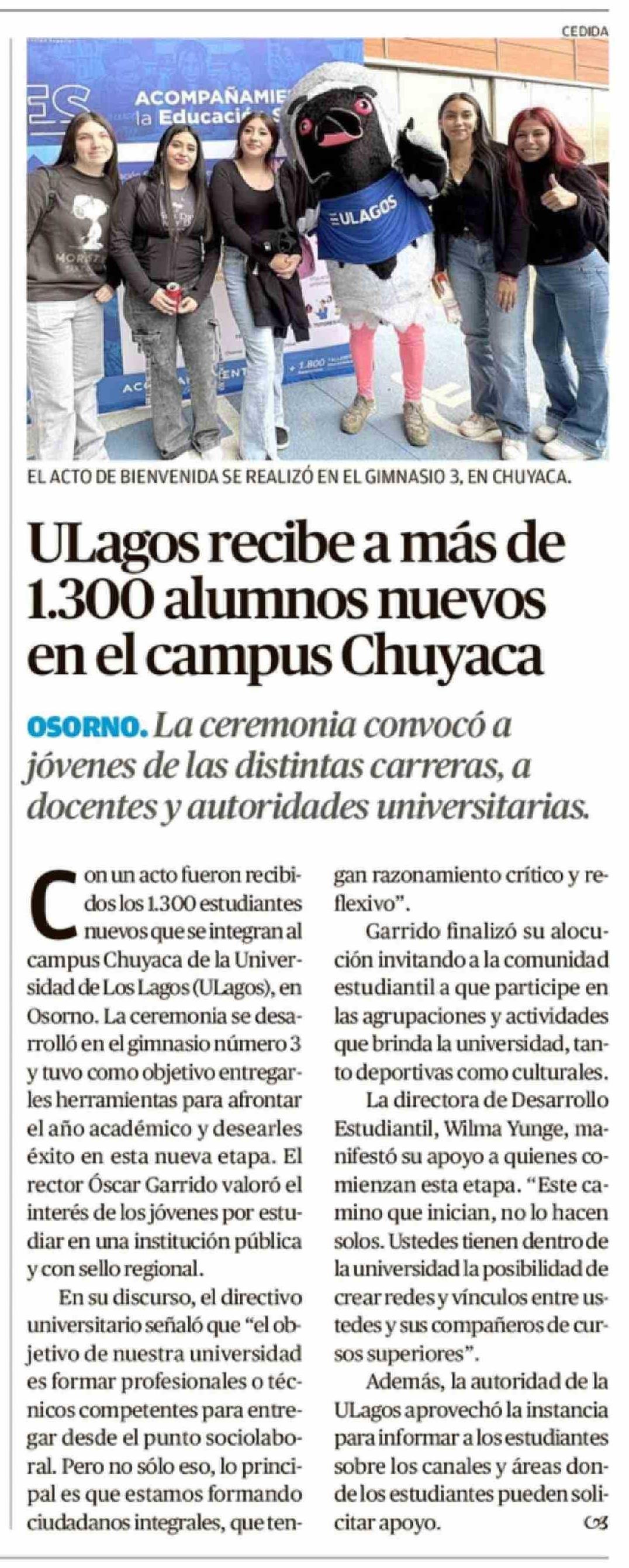 ULagos recibe a más de 1.300 alumnos nuevos en el campus Chuyaca