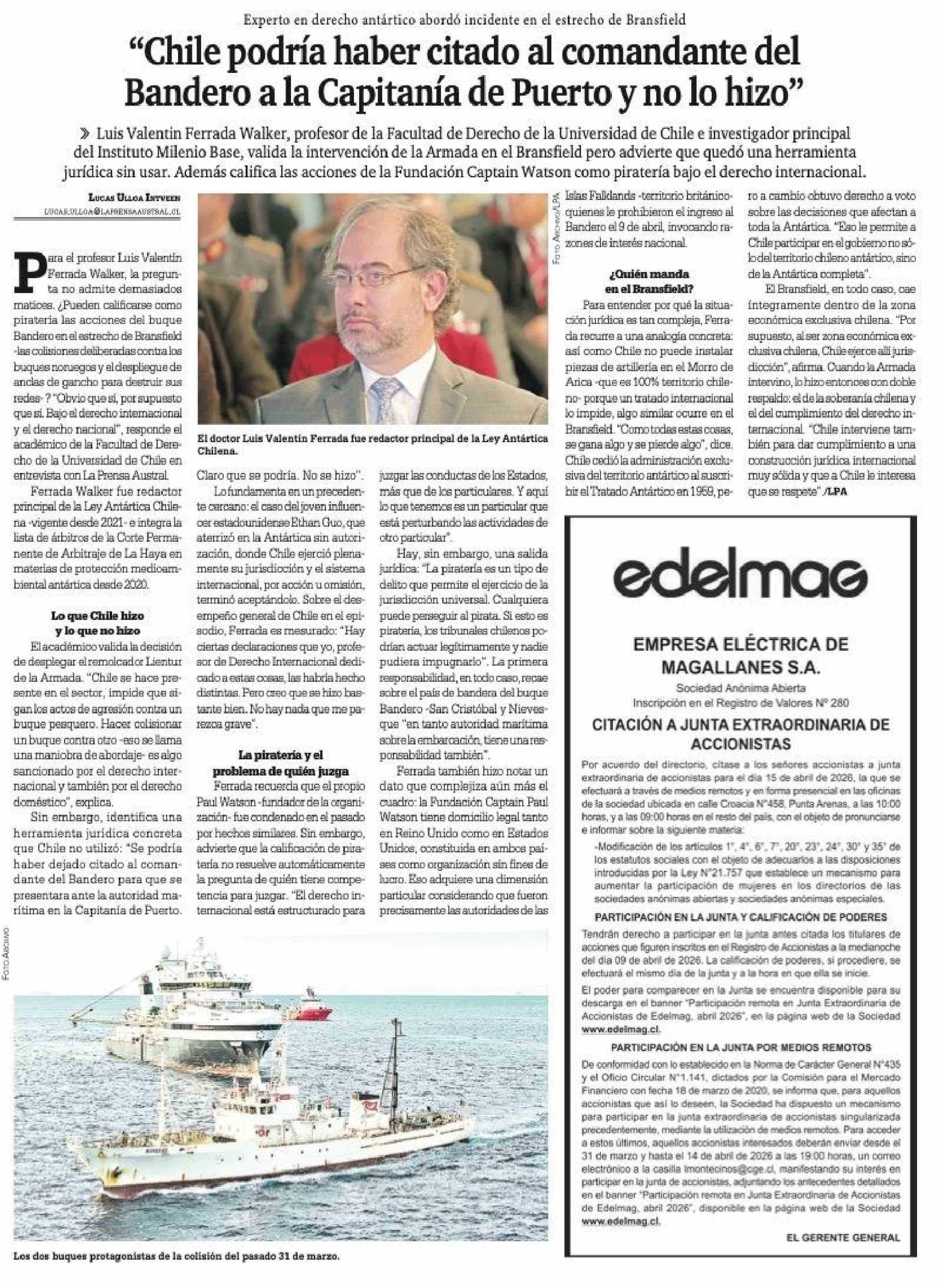 "Chile podría haber citado al comandante del Bandero a la Capitanía de Puerto y no lo hizo"