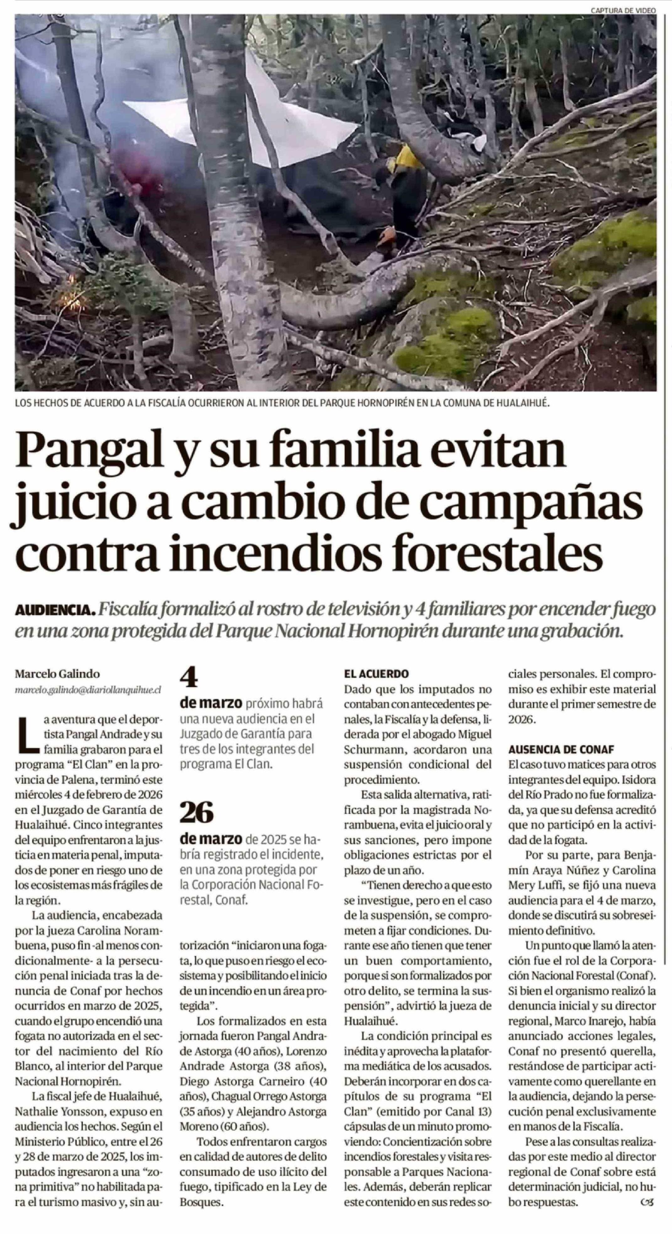 Pangal y su familia evitan juicio a cambio de campañas contra incendios forestales
