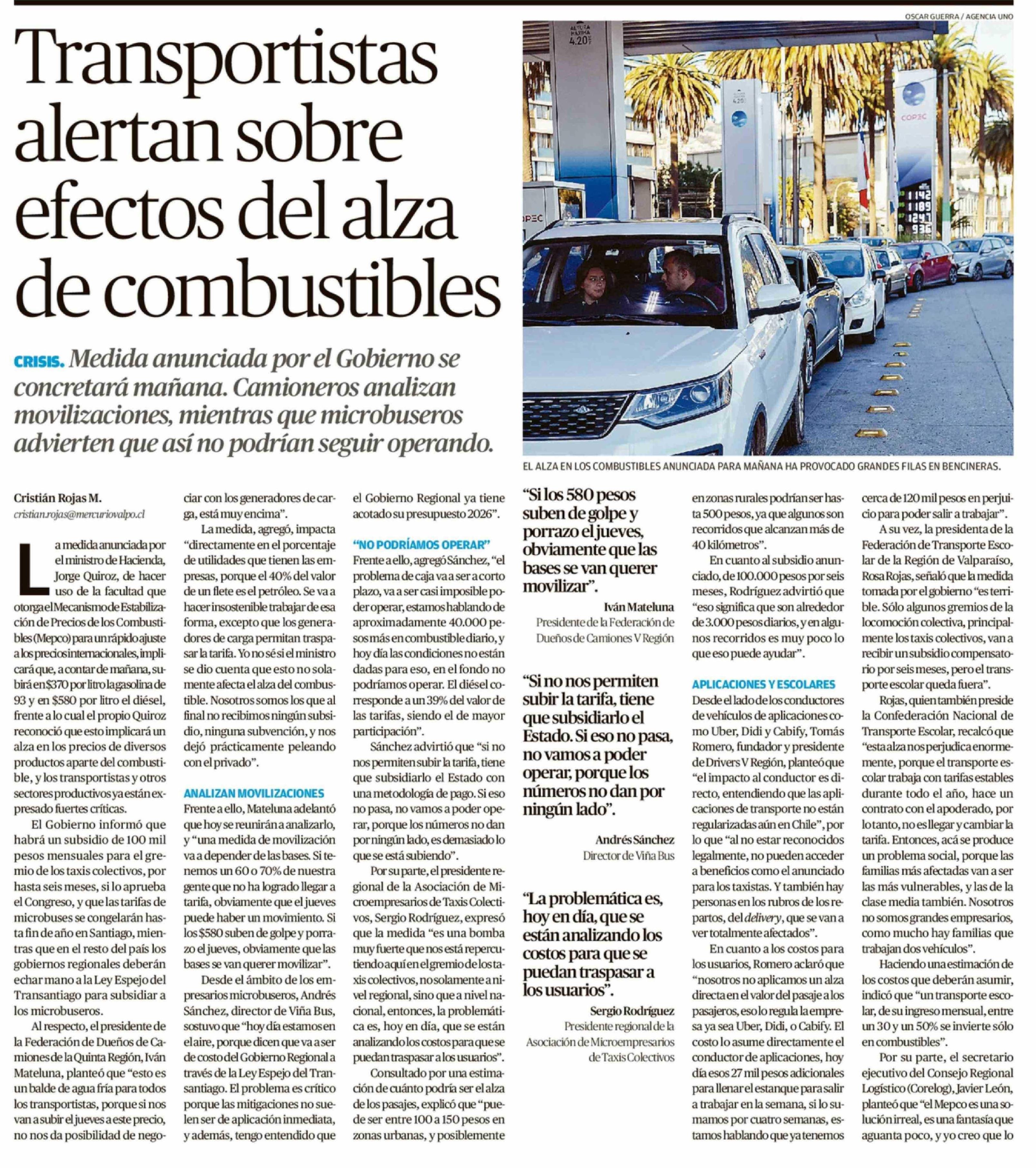 Transportistas alertan sobre efectos del alza de combustibles