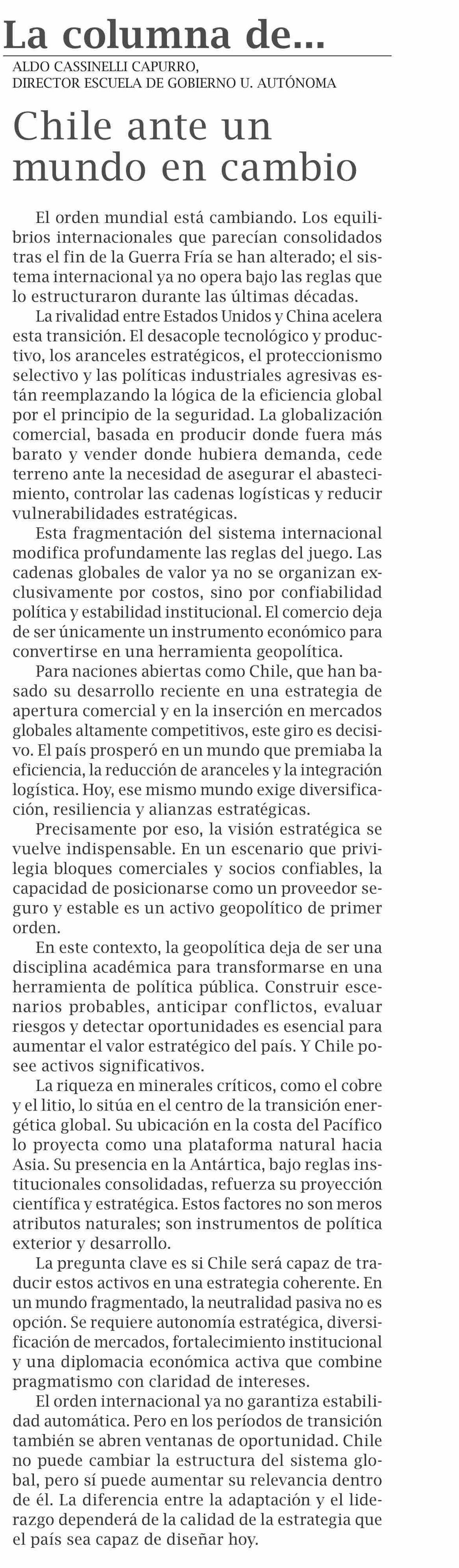 COLUMNAS DE OPINIÓN: La columna de... Chile ante un mundo en cambio